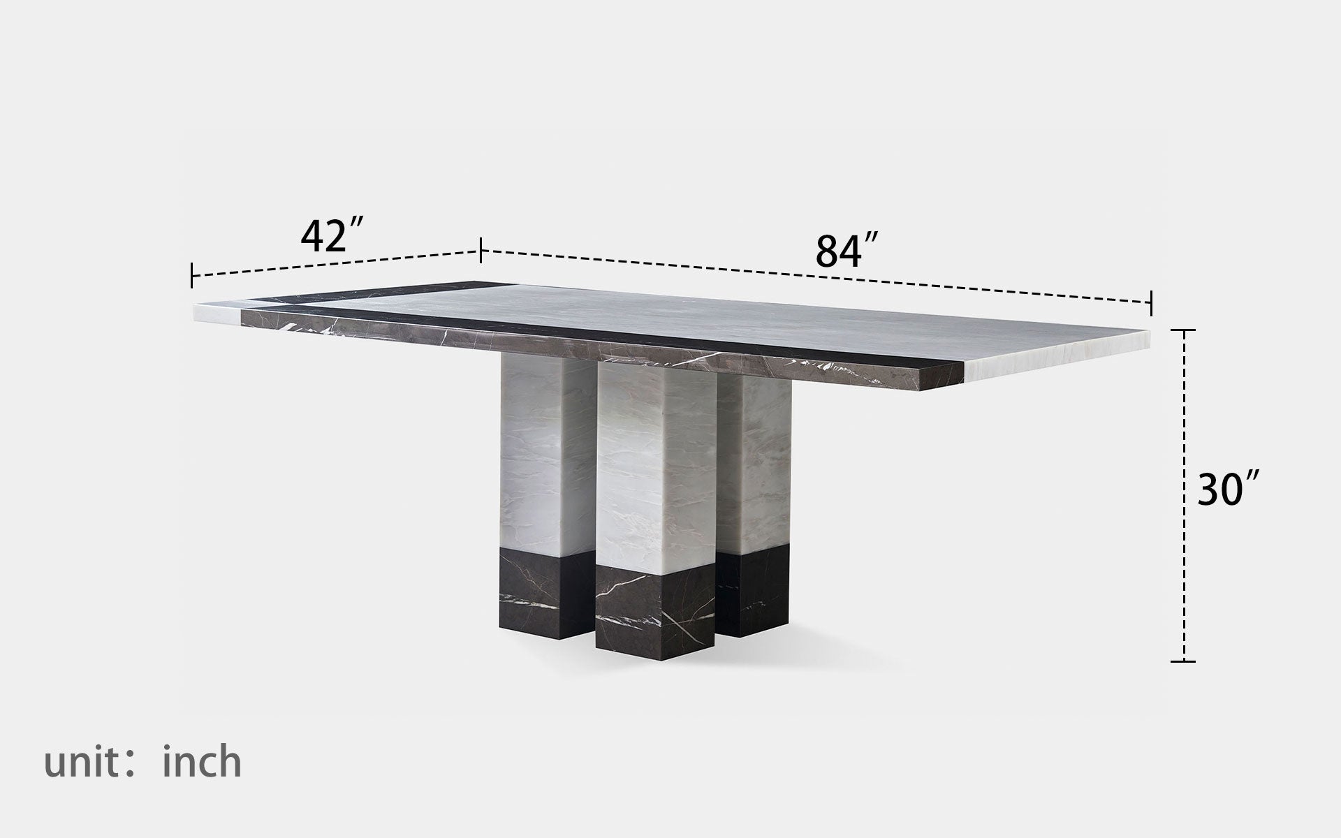 - The solid stone tabletop showcases a harmonious mix of dark and light marble tones, creating a stunning contrast that enhances any dining area.