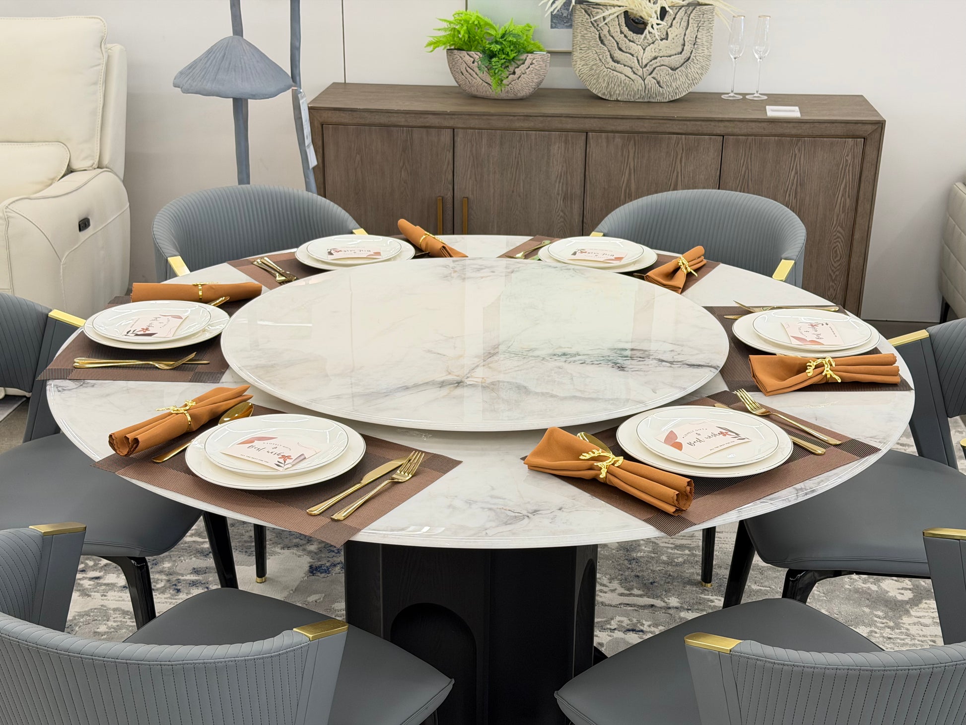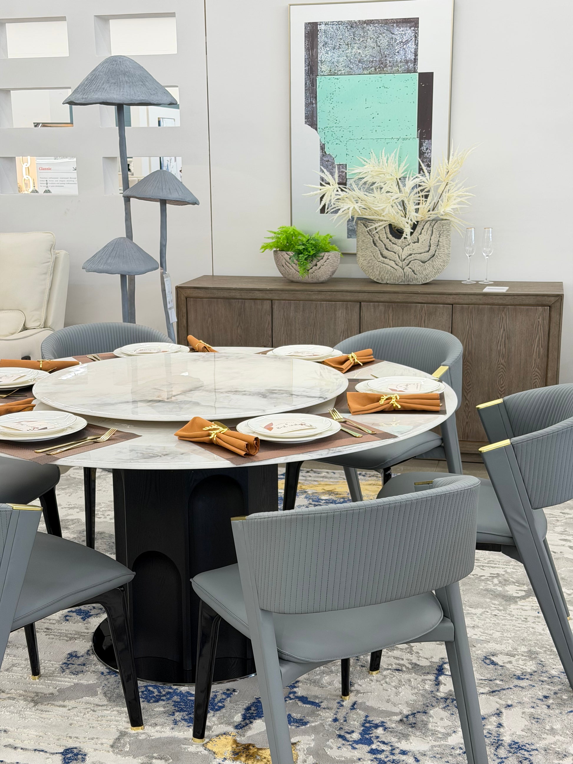 The round tabletop design saves space while maximizing seating capacity, making it ideal for medium-sized dining rooms or open-plan kitchens. Whether for daily meals or special occasions, it creates a warm and inviting atmosphere.