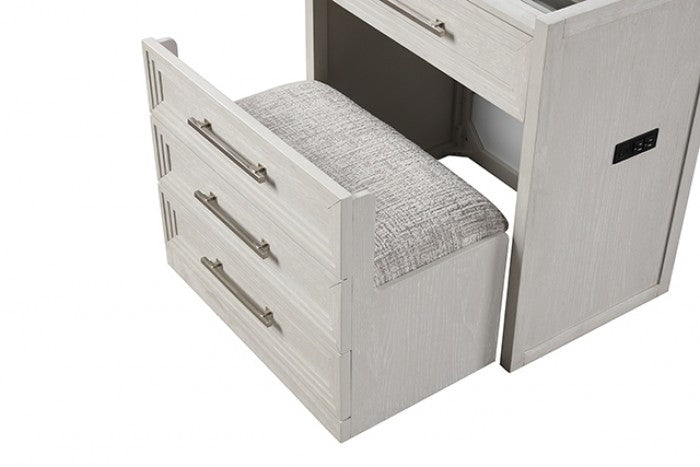 The Ashburton Vanity Set is a modern statement piece that blends sleek design with smart functionality, creating the perfect space for daily routines. Finished in a fresh white with acacia veneer accents, this bedside vanity combines elegance, storage, and technology to keep everything within reach.