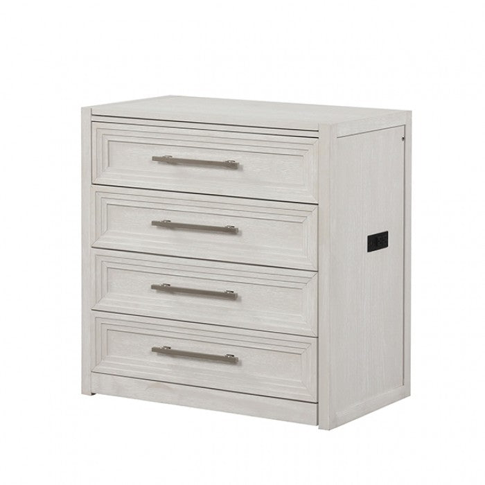 Crafted from solid wood, acacia veneer, and engineered wood, the clean silhouette and bright white finish bring a crisp, modern touch to any bedroom.