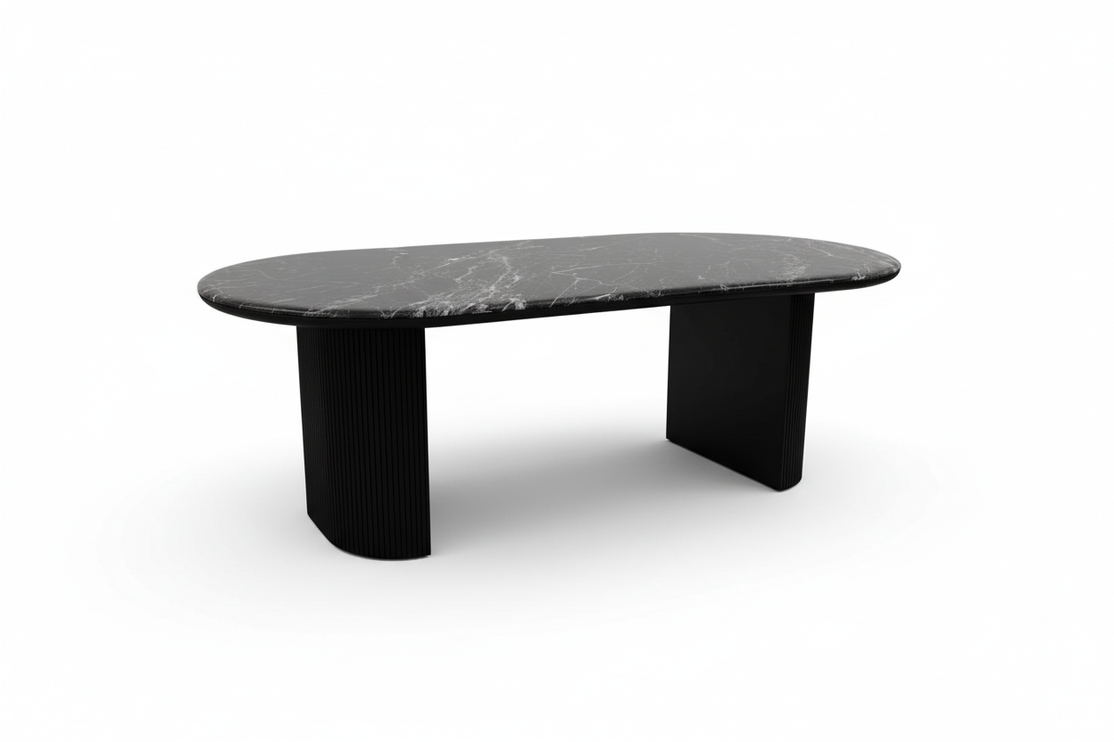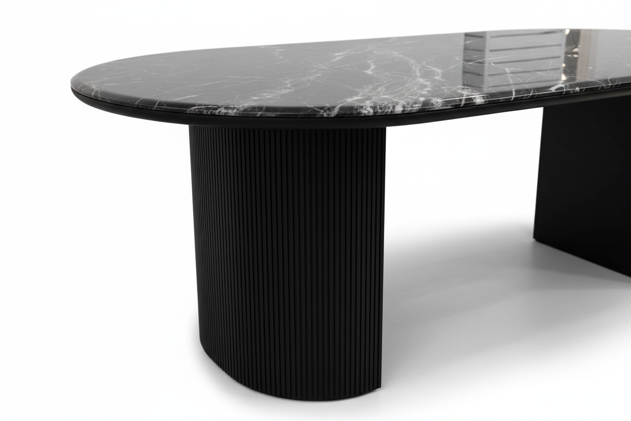 Elevate your dining experience with the Athena Curve Dining Table, a stunning fusion of sculptural design and everyday functionality. Designed for modern interiors that crave a bold focal point, this elegant dining table features a luxurious oval-shaped black marble top and architectural curved pedestal legs—a masterpiece that balances artistry with purpose.