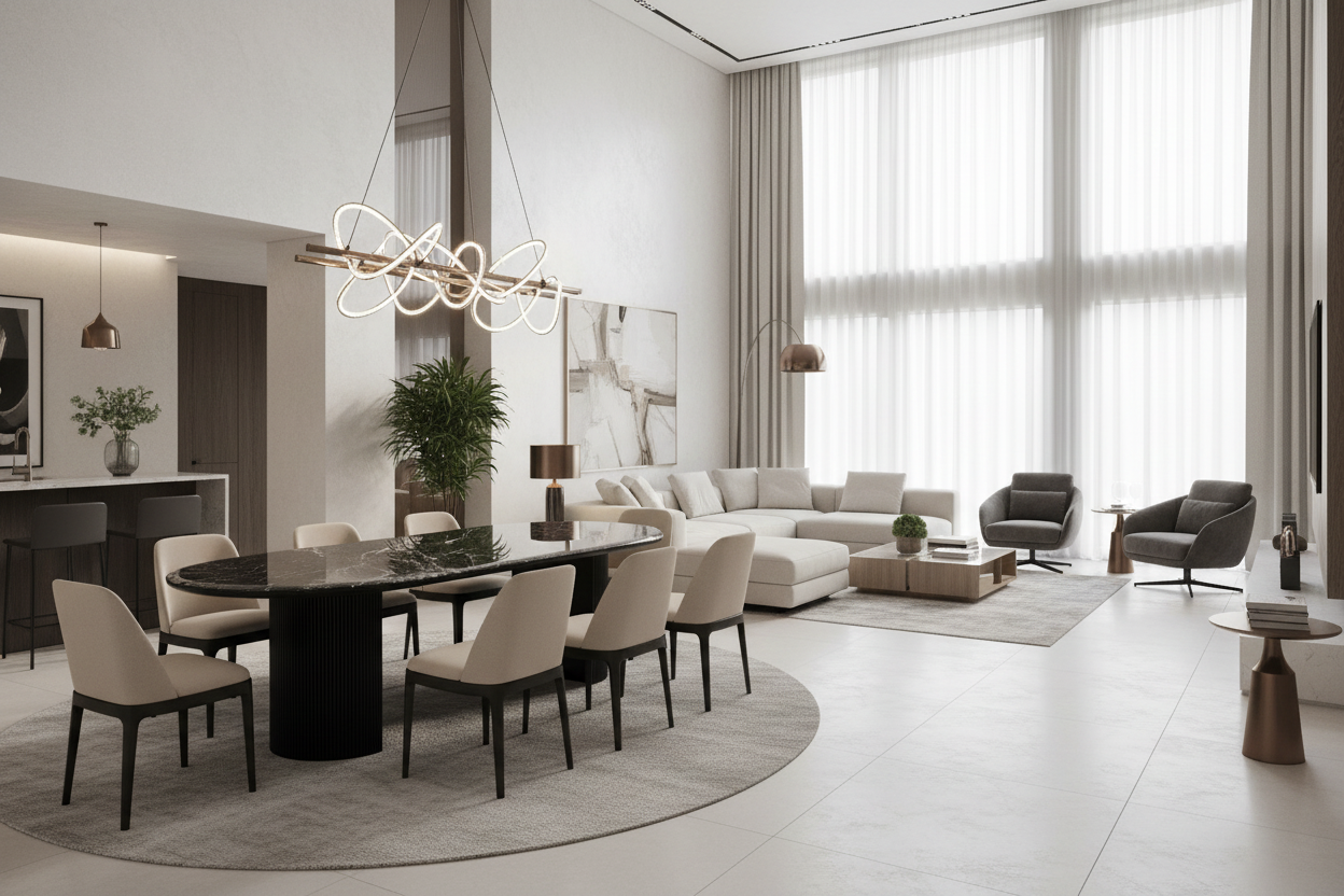 Whether paired with velvet, leather, or wooden dining chairs, the Athena table transitions seamlessly between modern minimalism, transitional décor, and even high-end eclectic interiors.