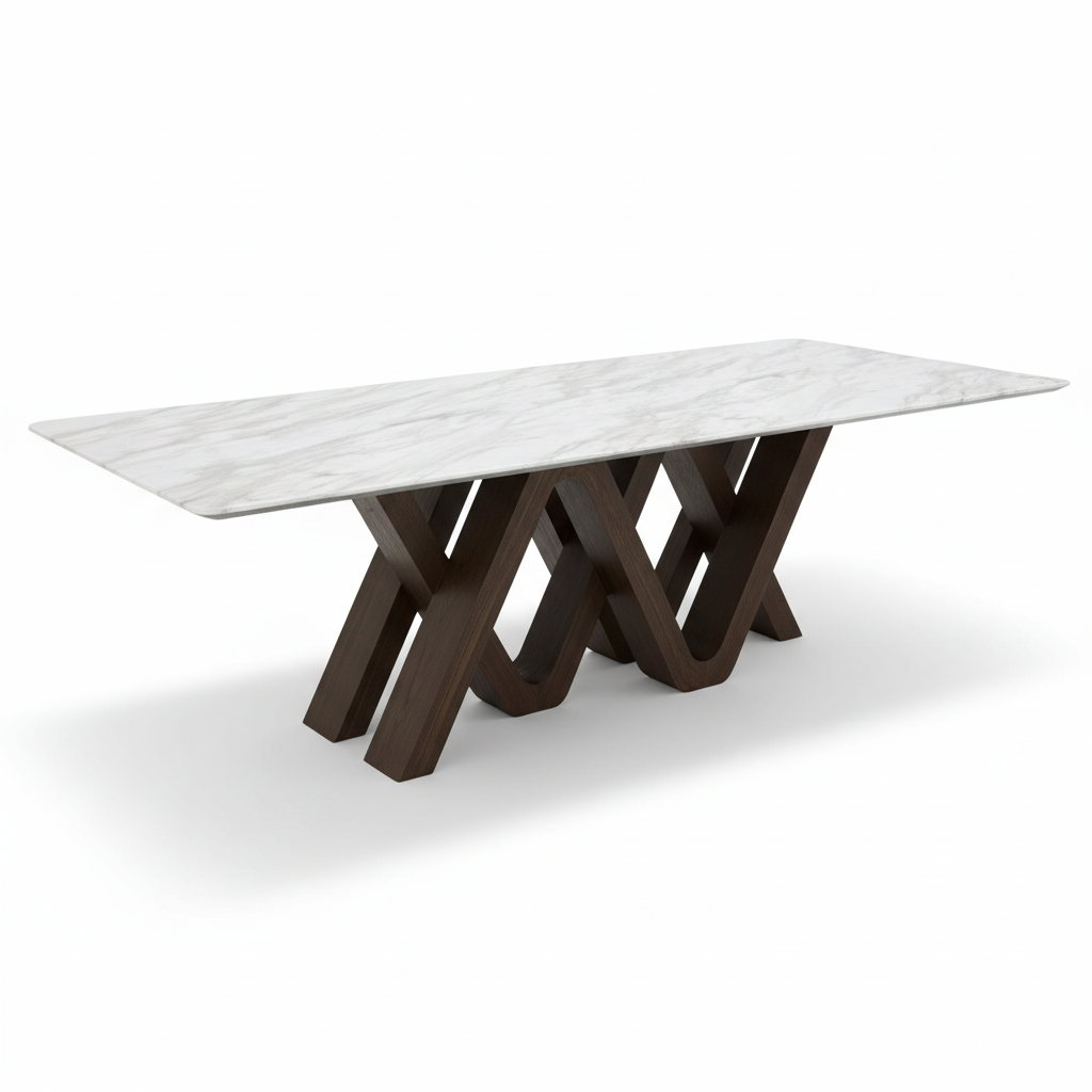 - Sculptural Base Design: Bold, artistic base with geometric forms that serve as a functional work of art