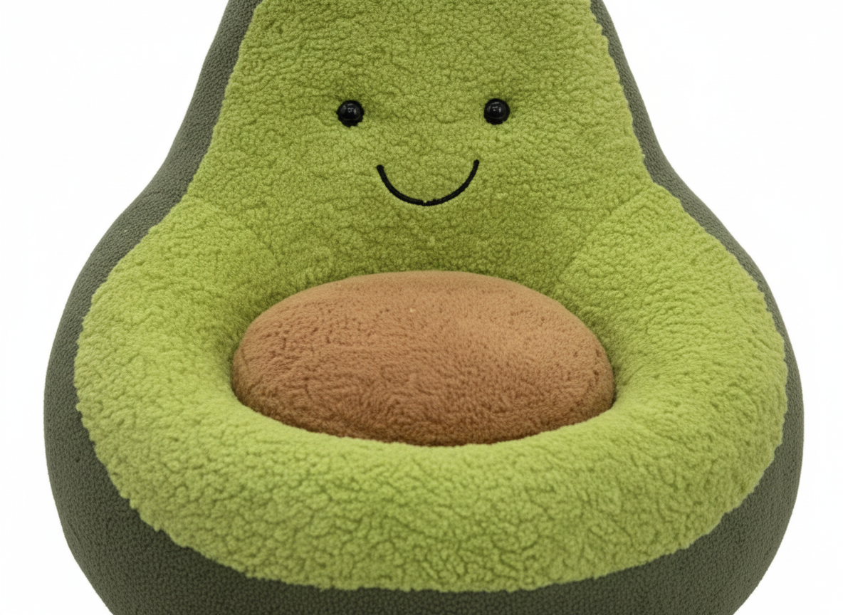 - Seed Cushion: The "pit" of the avocado is represented by a round, plush, brown cushion in the center, designed for added comfort and visual appeal.