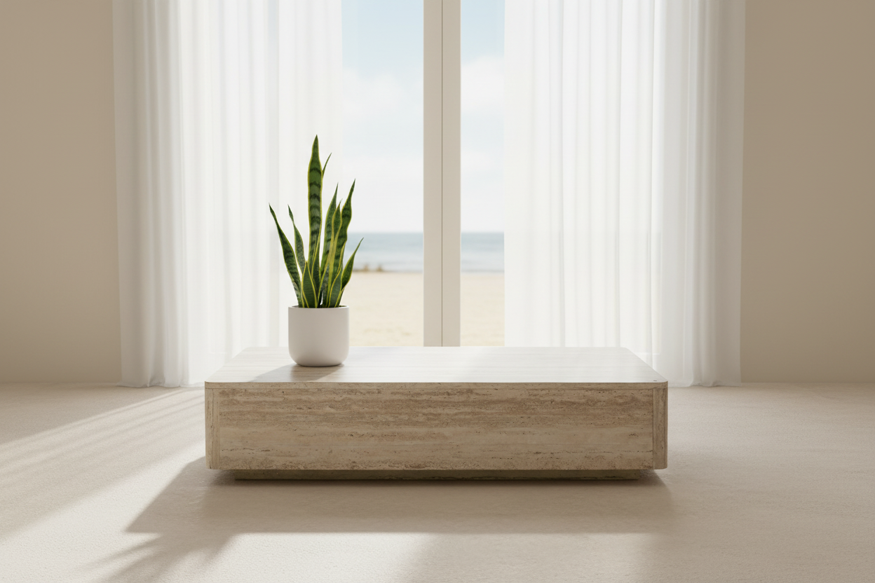 The Beachfront Coffee Table is a modern and minimalist rectangular coffee table, designed to bring a touch of natural elegance to any living space.