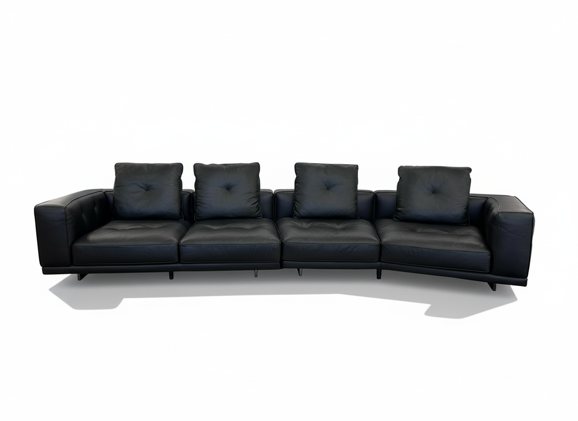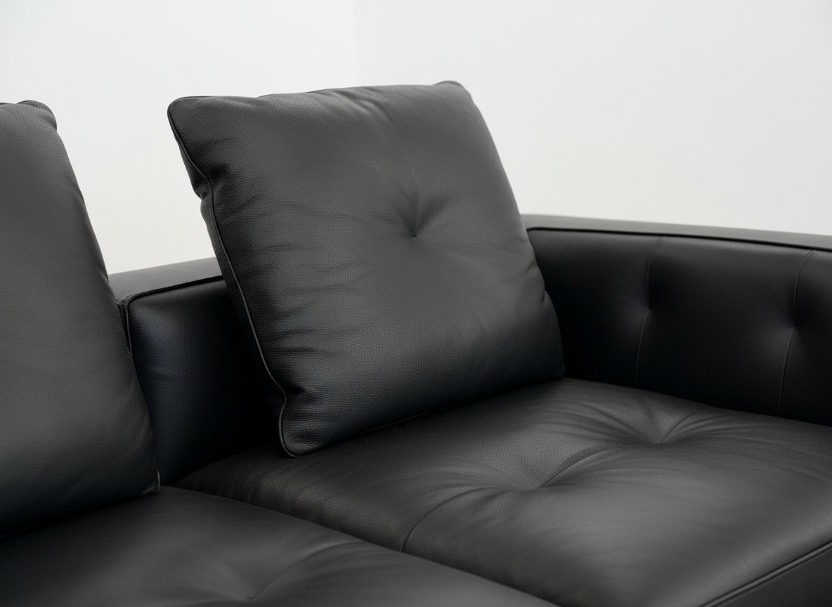 Experience the perfect blend of Italian minimalist design and luxurious comfort with this premium top-grain leather sectional. Upholstered in high-quality leather, it offers a soft, durable, and easy-to-maintain surface that exudes elegance. The spacious seating area, with its generous depth and width, invites you to lounge and unwind in style. Featuring a plush pillow-style backrest, this sectional provides optimal support while retaining a sleek, modern look. Built with a sturdy solid wood frame, it promises long-lasting stability and quality, making it a sophisticated and functional addition to any contemporary living space.