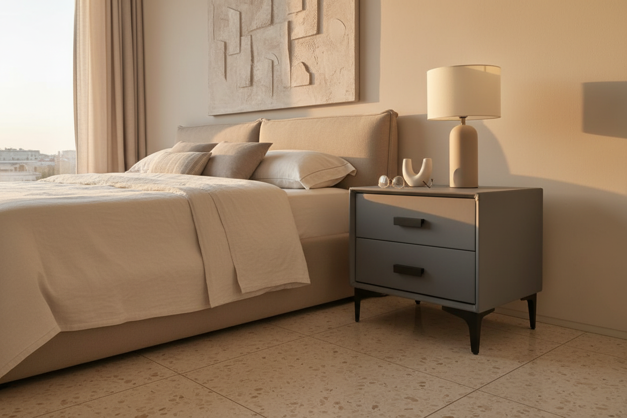 The generous top surface provides ample space for your nighttime essentials—a beautiful reading lamp, your current novel, a glass of water, or your phone and charging cable. The spacious drawer offers concealed storage for personal items, maintaining a serene and organized bedroom environment while keeping everything you need within easy reach.