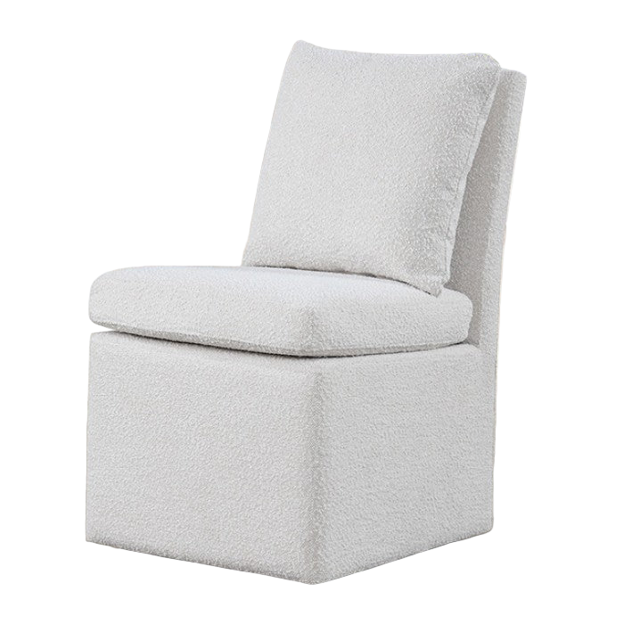 The Broager Dining Chair combines modern comfort with versatile design, making it a stylish addition to any dining or lounge setting. Wrapped in soft bouclé chenille fabric, this chair offers a cozy yet refined look, while hidden casters add effortless mobility.