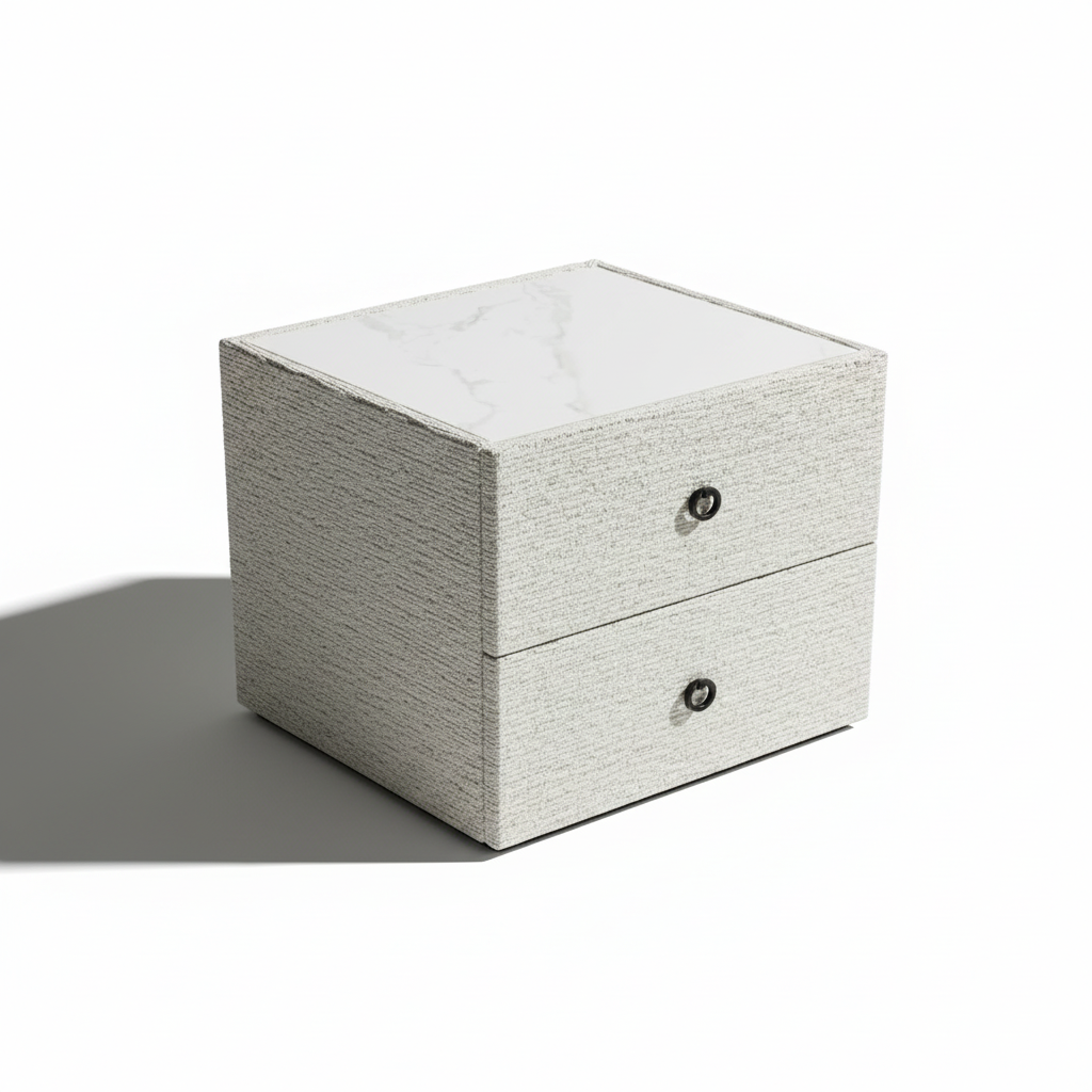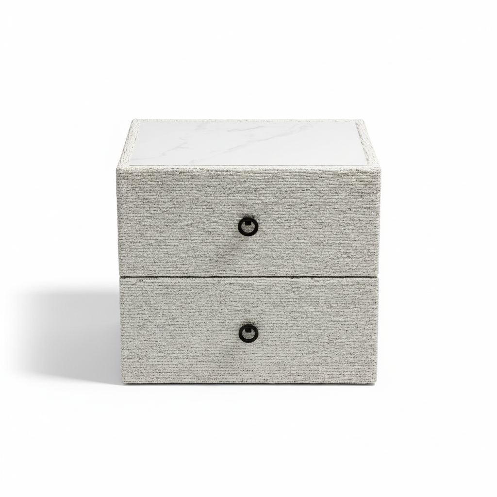 The Casa Tessuto Nightstand redefines bedside luxury with its exquisite fabric upholstery. 'Tessuto' meaning 'fabric' in Italian, this premium nightstand showcases the perfect marriage of soft textile craftsmanship and functional design, bringing a touch of sophisticated comfort to your bedroom sanctuary.