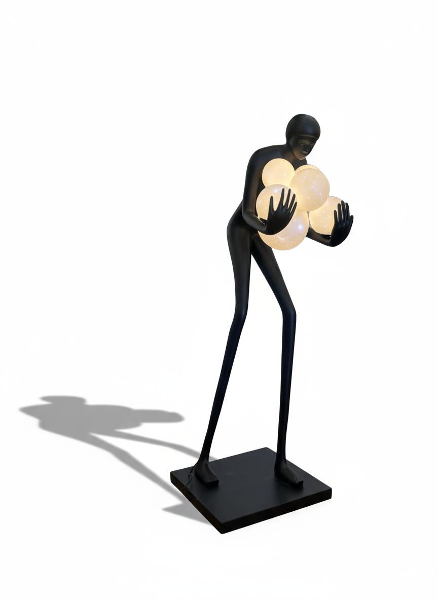 The Celestia Protect Floor Lamp is a captivating fusion of strength, elegance, and celestial beauty. This artistic design features an elongated female figure in a protective stance, cradling a constellation of glowing orbs close to her chest. The radiant spheres symbolize the warmth and light of the cosmos, casting a soft, ambient glow that infuses the room with a sense of tranquility and reassurance.