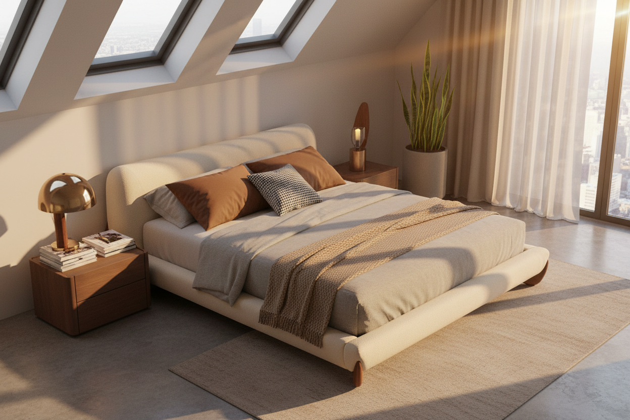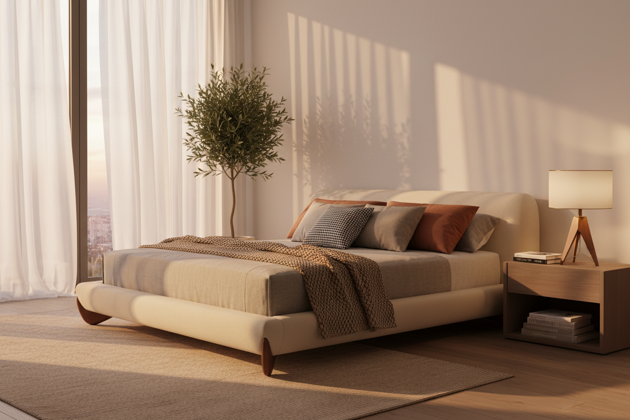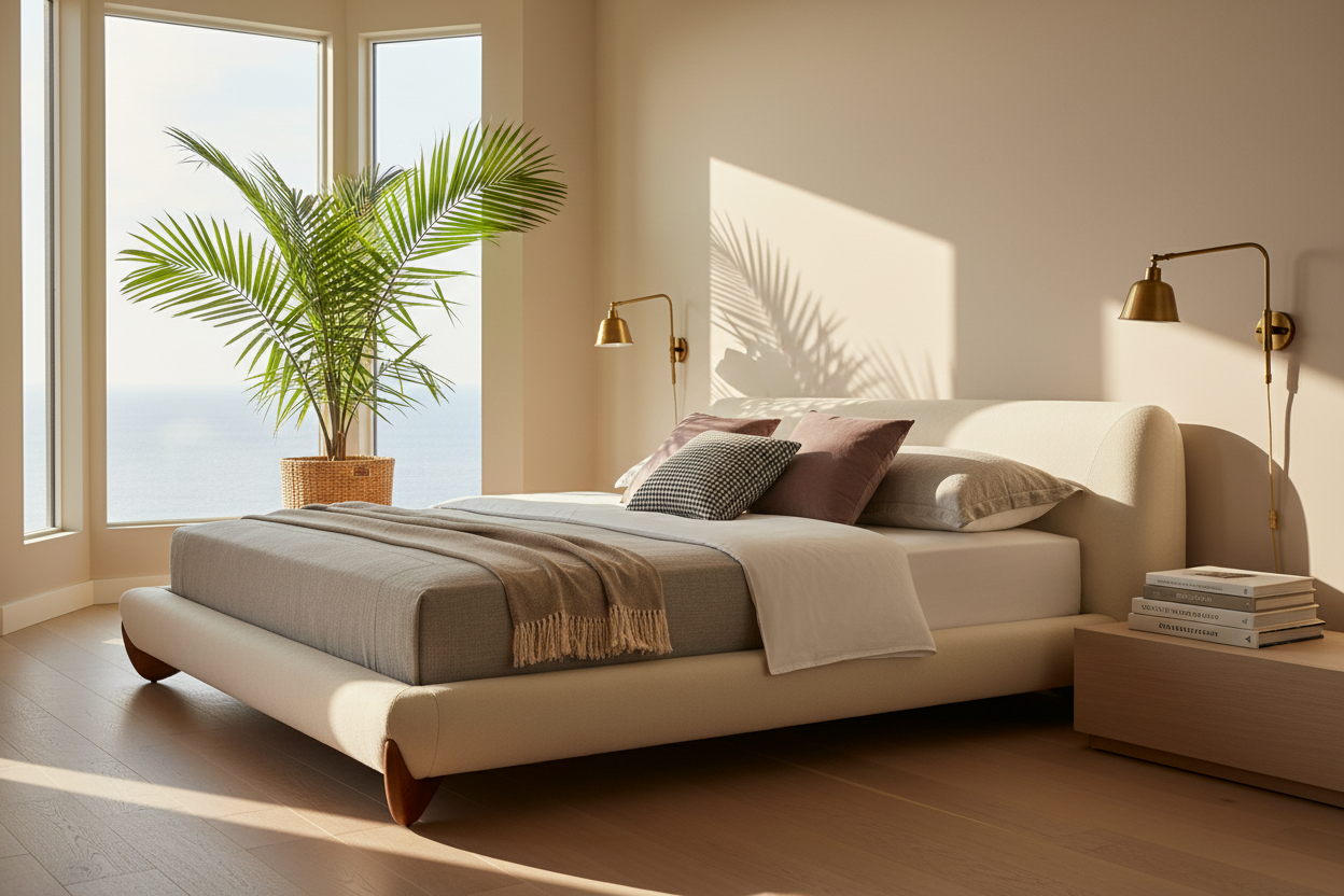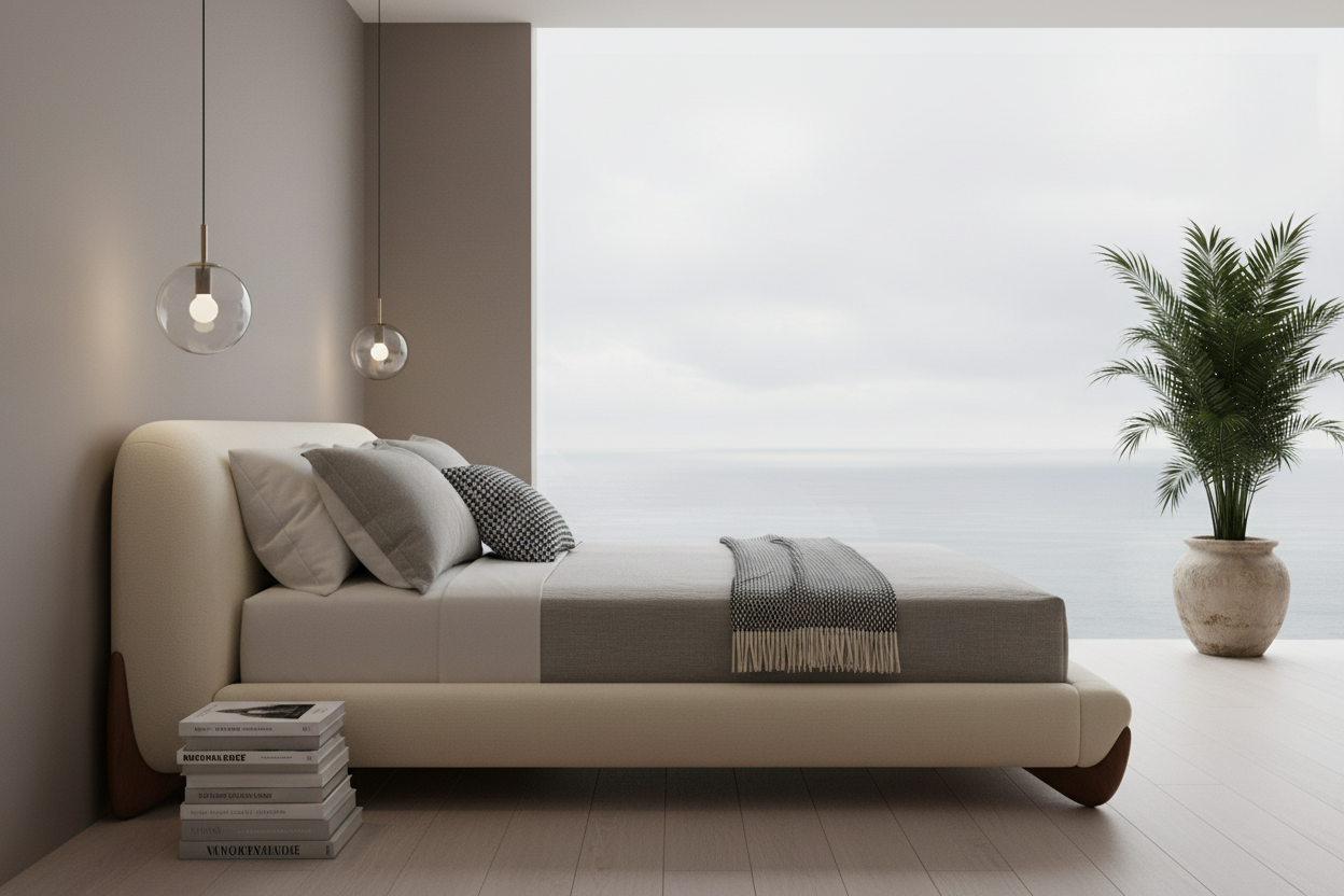 The Coastal Harmony Bed offers a blend of comfort and modern elegance, perfect for those seeking a peaceful yet sophisticated bedroom design.