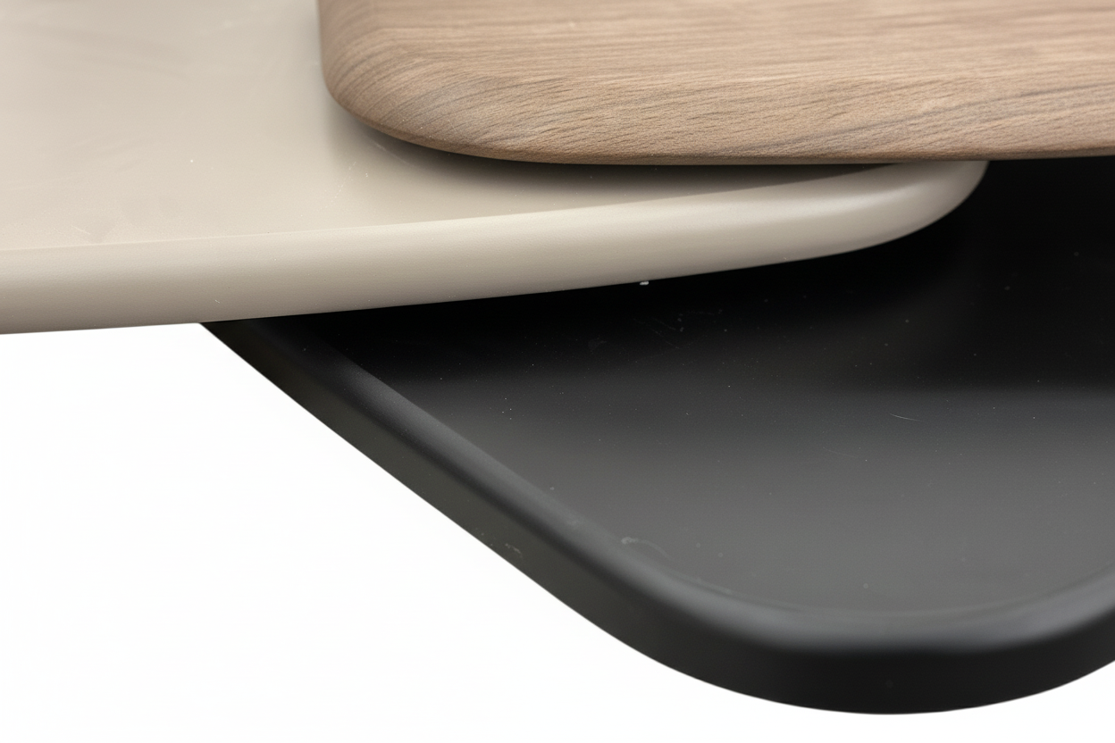 Elevate your living space with the Cobblestone Coffee Table, a striking blend of modern minimalism and organic sophistication. Inspired by nature’s effortless harmony, this designer coffee table features a multi-tiered composition that mimics the soft, fluid shapes of river stones artfully stacked together. Each tier showcases a different finish—natural wood grain, stone beige, and charcoal black—creating a visually dynamic contrast while maintaining a calming, neutral palette.