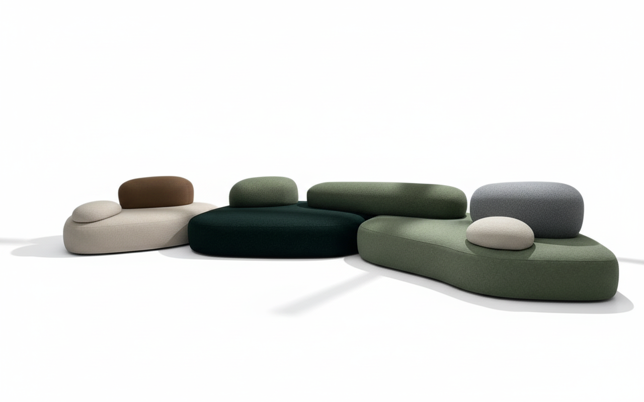 Upgrade your living area with the Cobblestone Modular Couch, a fusion of natural aesthetics and modern design. This set features organically shaped cushions inspired by the smooth curves of pebbles, available in earthy tones that bring warmth and serenity to your space. Its modular nature allows you to arrange the pieces to suit any layout, making it both stylish and practical. The soft, durable fabric and plush cushioning provide ultimate comfort for relaxing or entertaining.