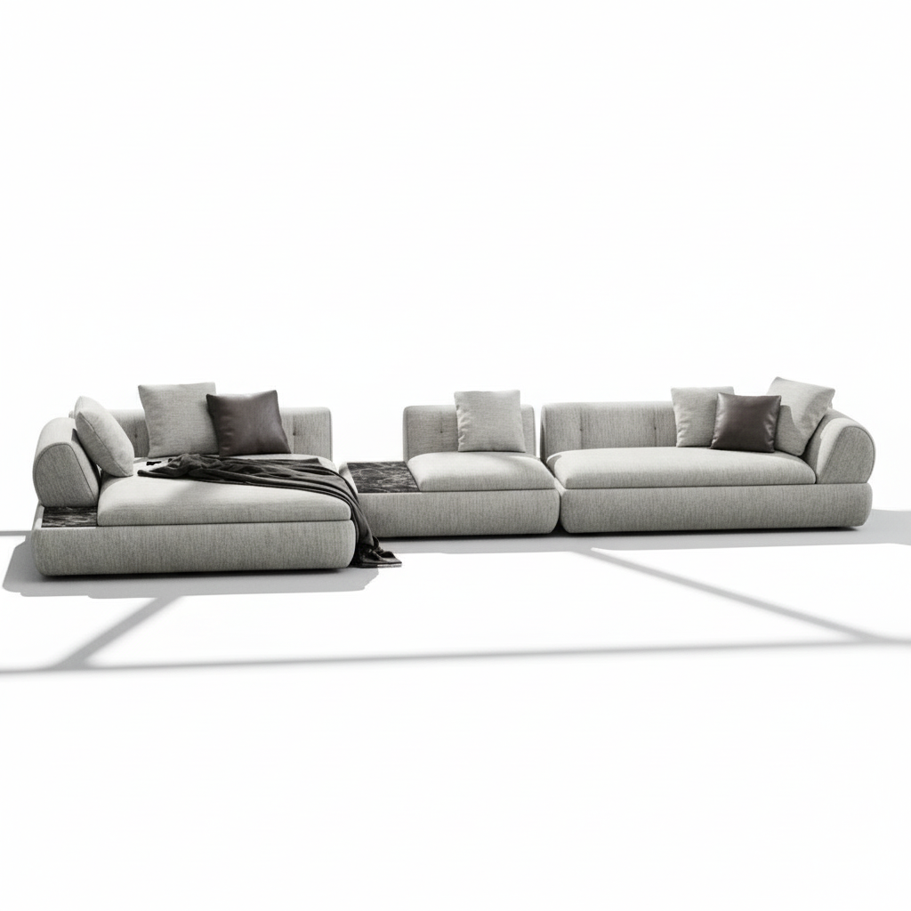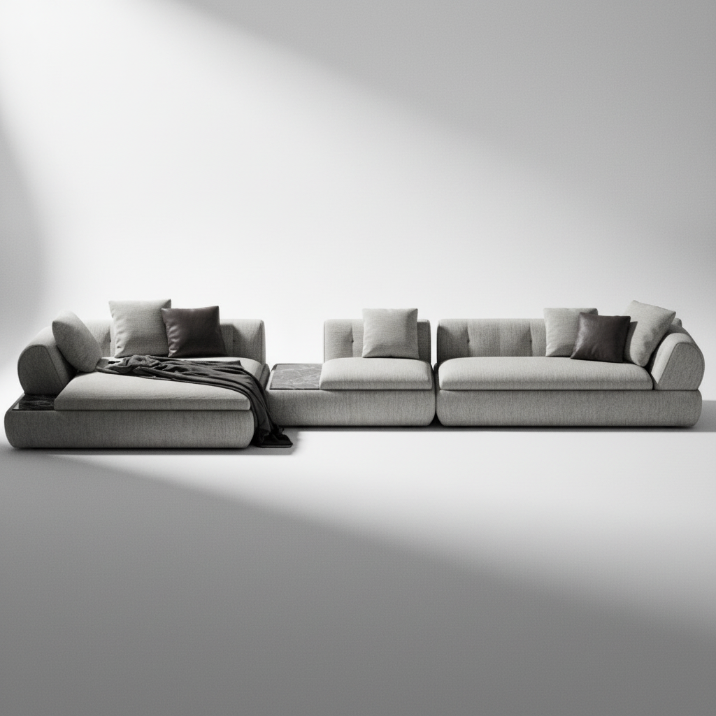 Elevate your home with the Crater Upholstered Sectional, a luxury modular sofa designed for modern living. This sculptural statement piece combines soft, rounded contours with integrated marble console tables—bringing together comfort, functionality, and high-end contemporary design. Perfect for homes seeking a clean, minimal, yet upscale aesthetic, the Crater Sectional offers both visual elegance and unmatched lounging comfort. Its modular structure makes it ideal for large living rooms, open-concept layouts, or anyone looking for a customizable modern sectional sofa that adapts to your space.