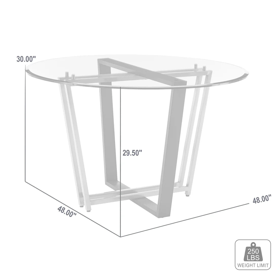 - Material: Clear tempered glass top with metal base