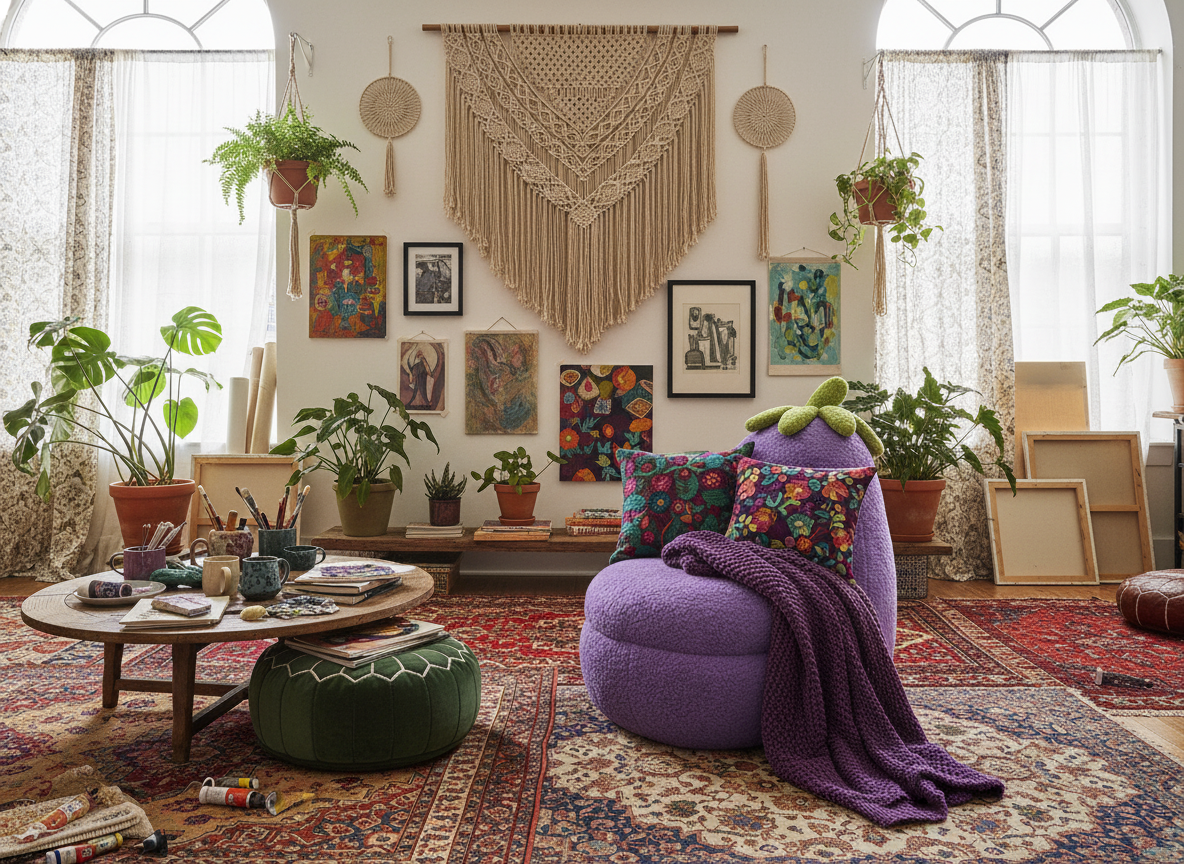 - Natural Color Palette: Upholstered in earthy tones like purple, with accents of green, the chair reflects the natural hues of a ripe eggplant.