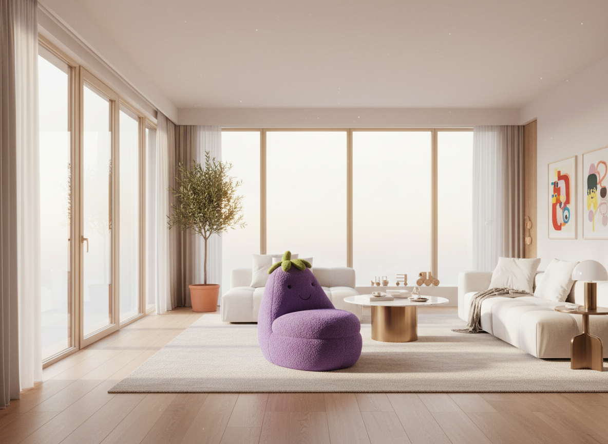 - Eggplant Shape: Designed to mimic the organic curves of a Eggplant, the chair has a rounded base with a slightly tapered top, evoking the iconic silhouette of this beloved vegetable.