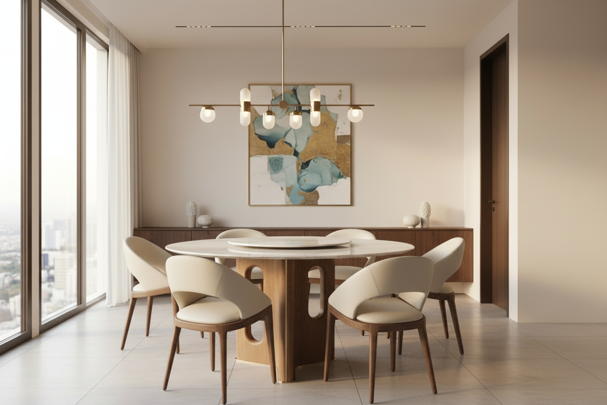 Ideal for family dinners, celebrations, or entertaining guests, offering plenty of space while maintaining an intimate dining experience.