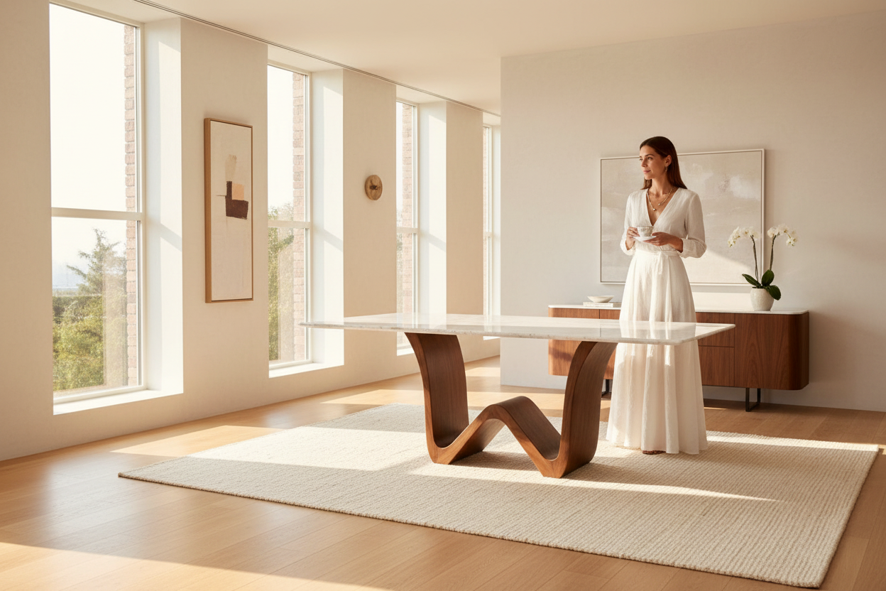 Perfect for modern interiors seeking elegance, authenticity, and natural sophistication, this table transforms dining into a statement of refined luxury.