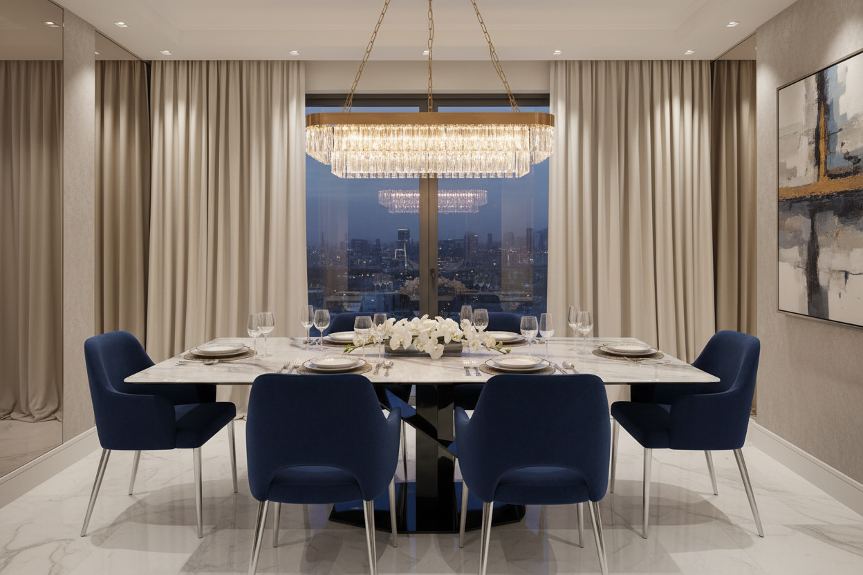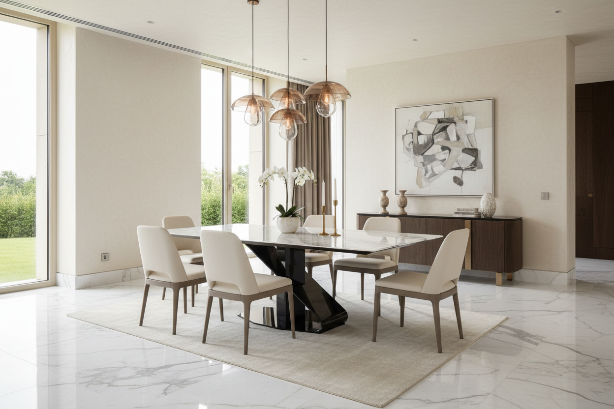 Transform your dining room into a gallery of modern luxury with the Ethereal Dining Table.