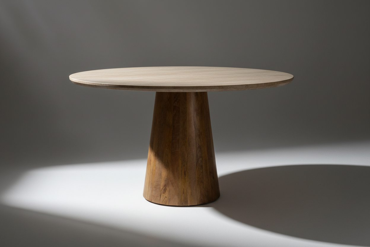 - Base: Solid wood base with a natural finish, complementing the marble top for a harmonious, earthy aesthetic.