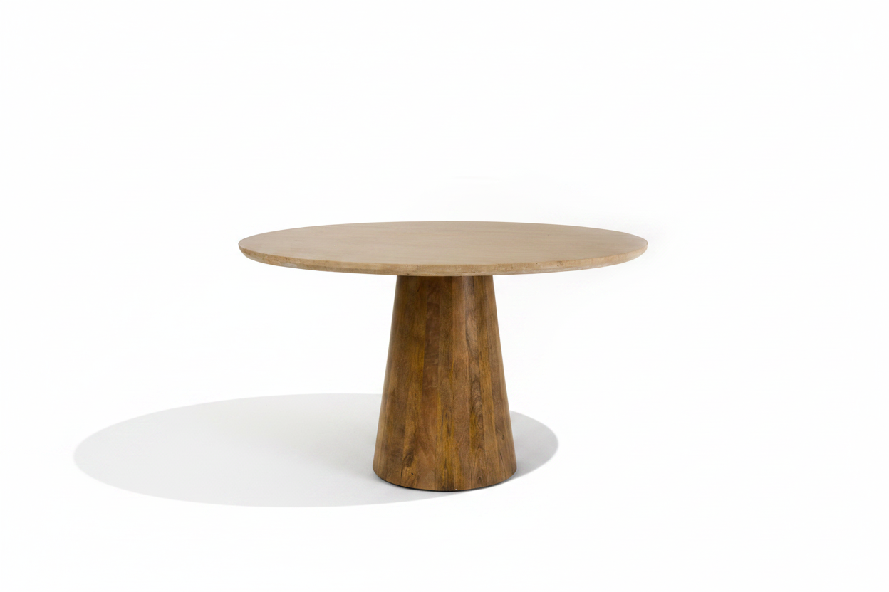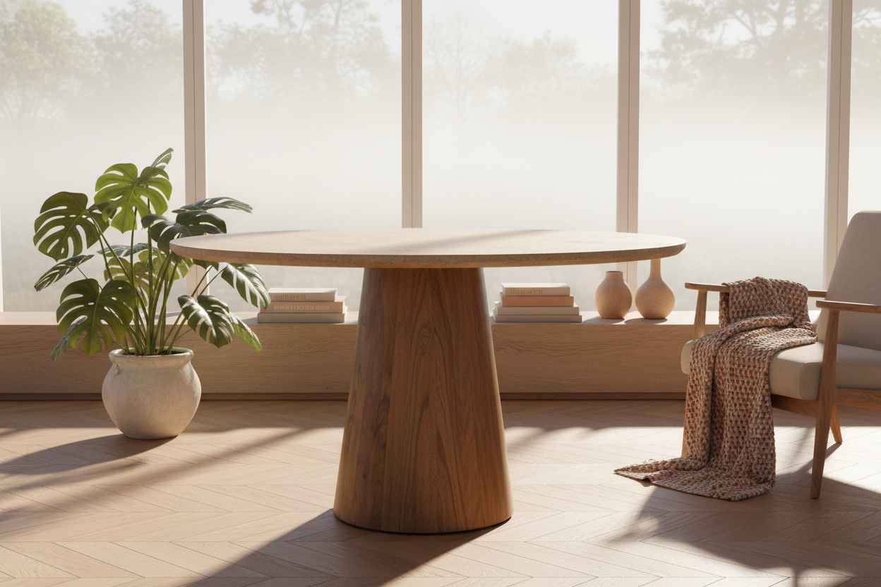 The Floral Scent Table is a beautifully crafted round dining table that blends natural materials for a refined and elegant look. Perfect for those who appreciate organic textures and simple sophistication.
