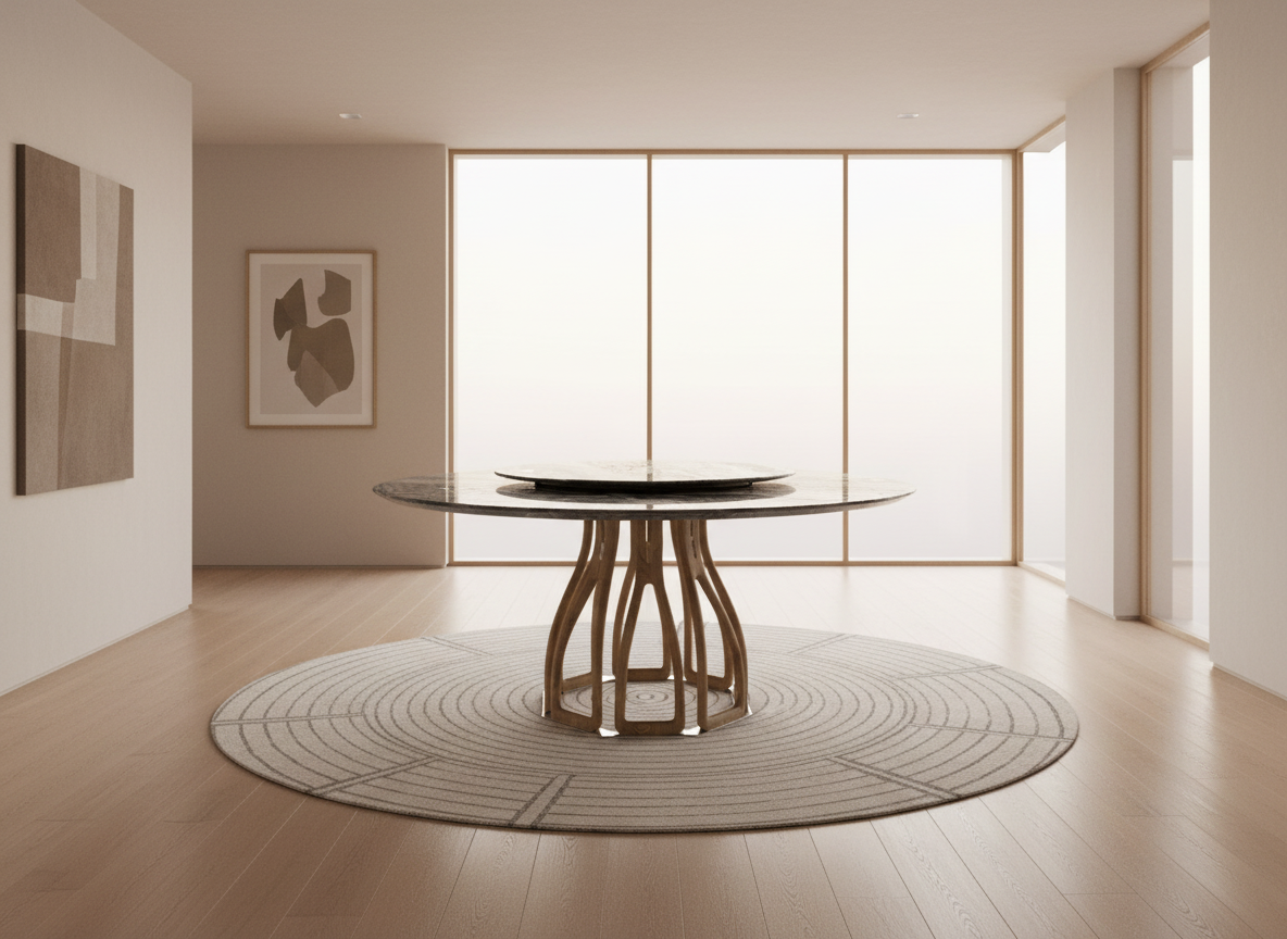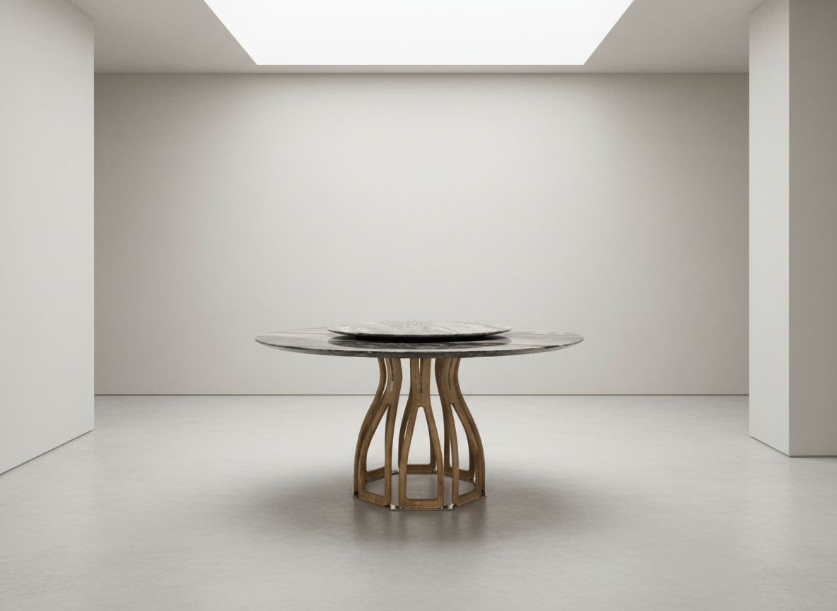 The table's signature flowing silhouette captures the essence of natural movement, creating a dynamic visual statement that transforms dining into an artistic experience. -