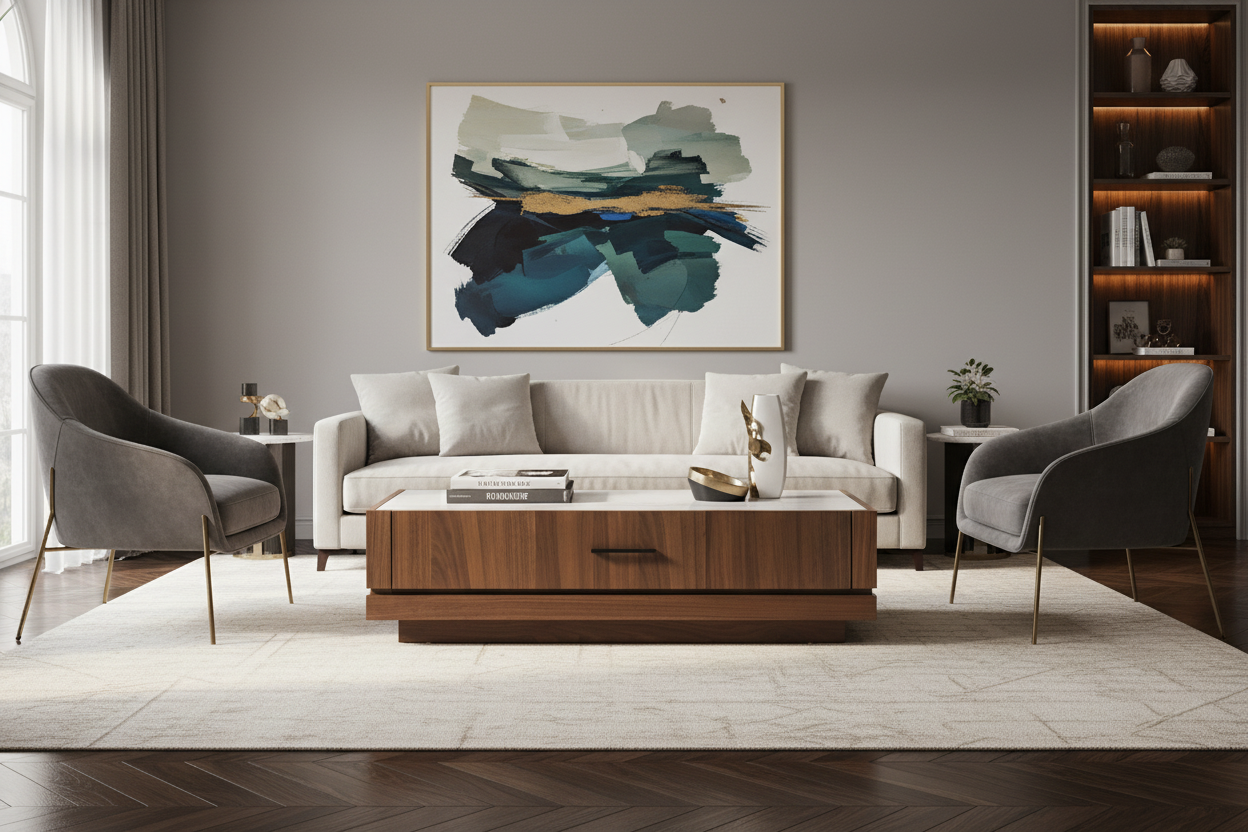 This coffee table is designed to blend effortlessly into your living area, providing functionality with a refined, modern style.