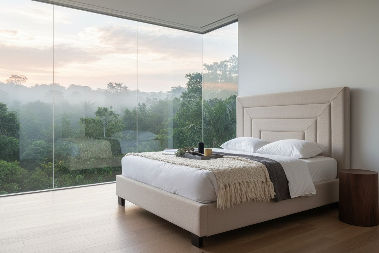 - Geometric Panel Headboard: Features an eye-catching layered design with soft, padded panels for a bold yet sophisticated look.