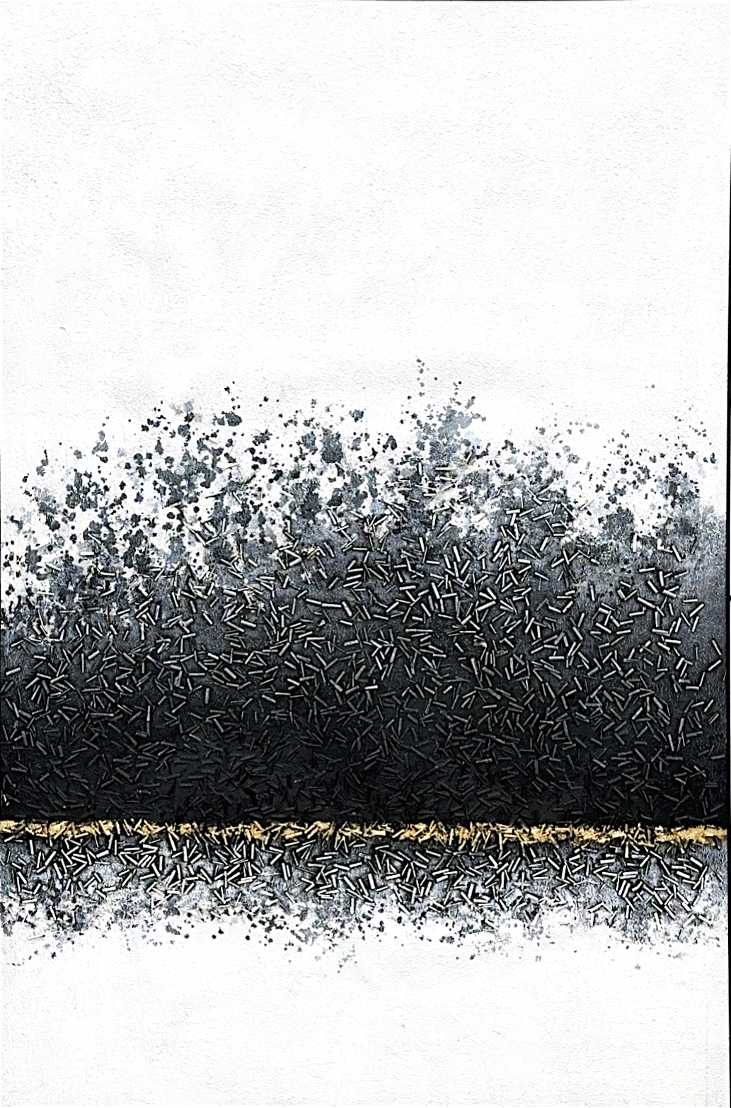 Rendered in a limited palette of white, black, and gold, Golden Divide harmonizes effortlessly with modern, industrial, and minimalist interiors. Its high-contrast composition and tactile surface invite close inspection, making it a captivating focal point for both residential and commercial spaces.
