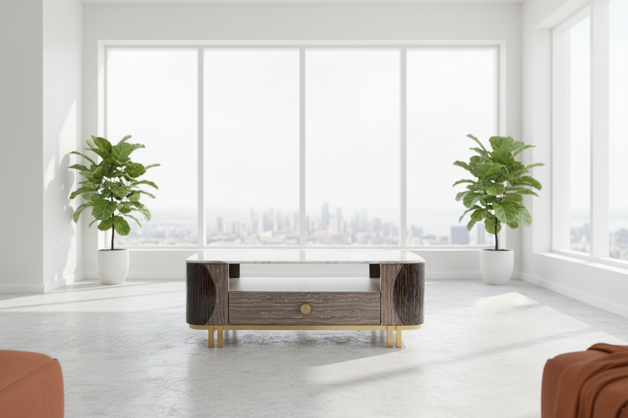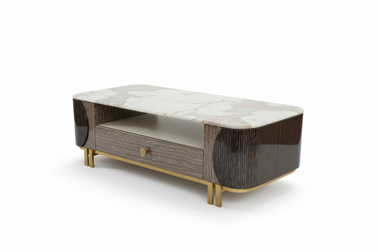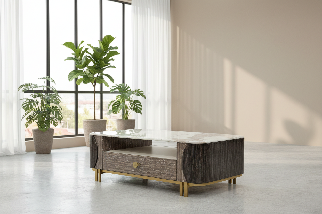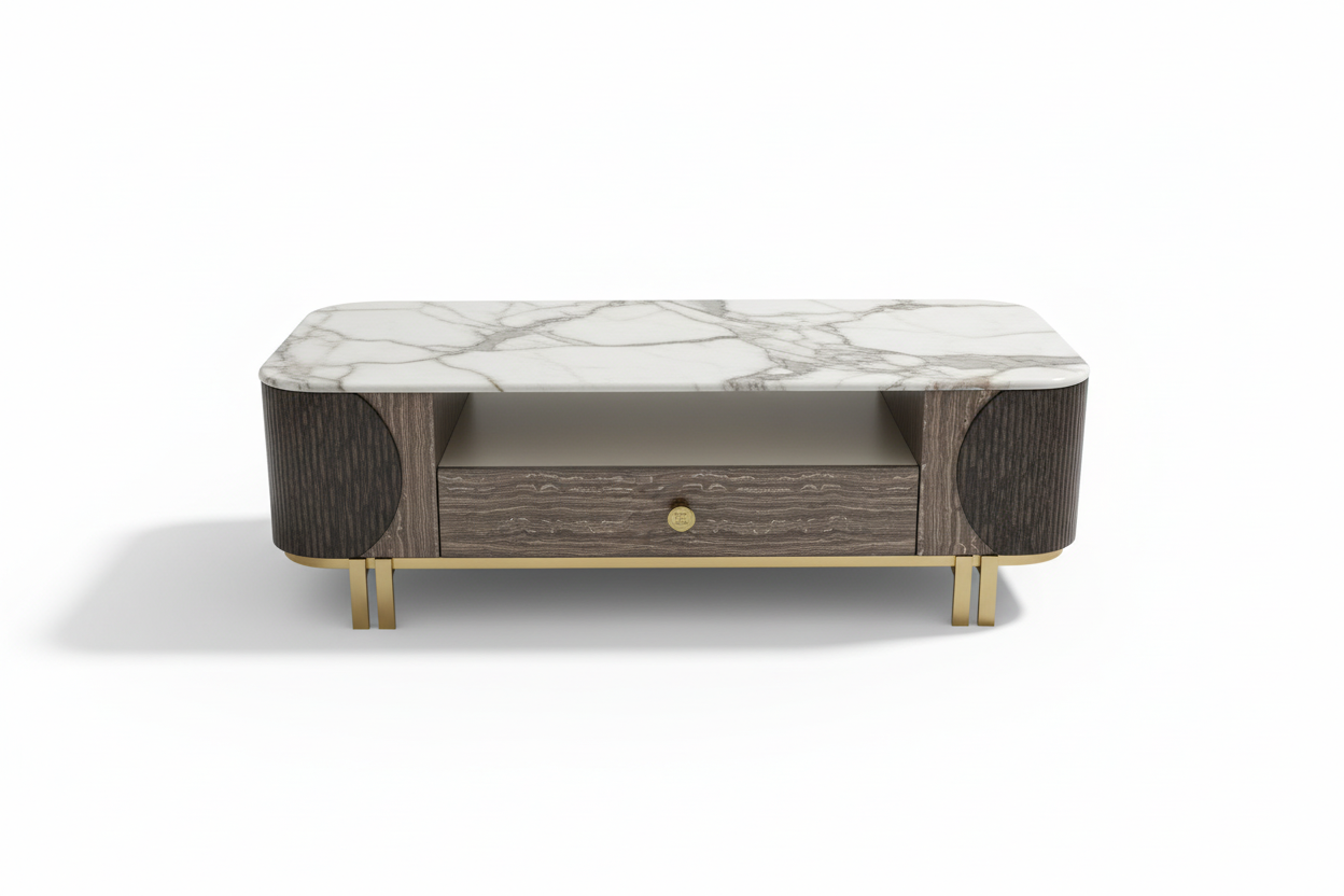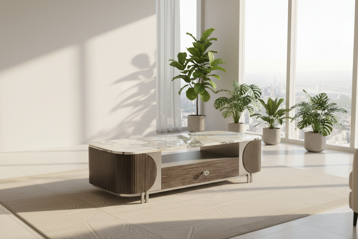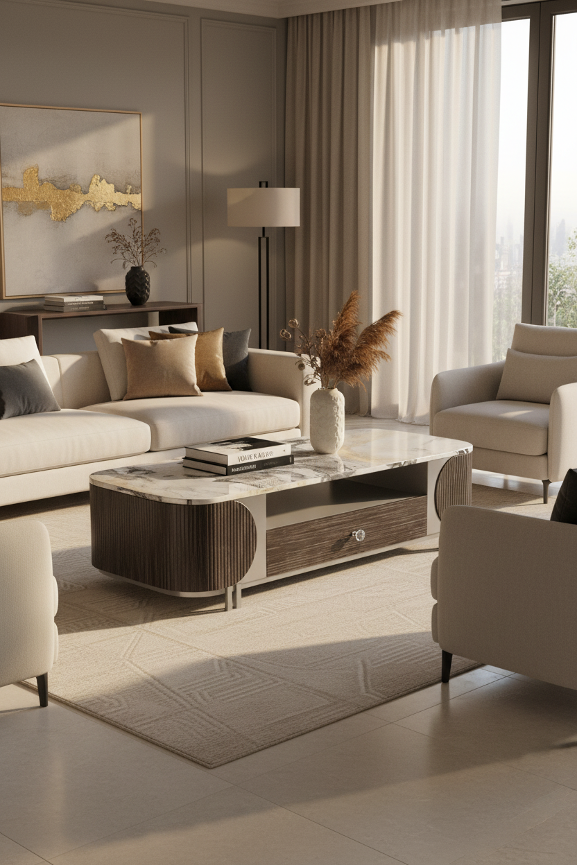 A timeless fusion of marble beauty and designer craftsmanship—made to elevate your living room with both style and function.