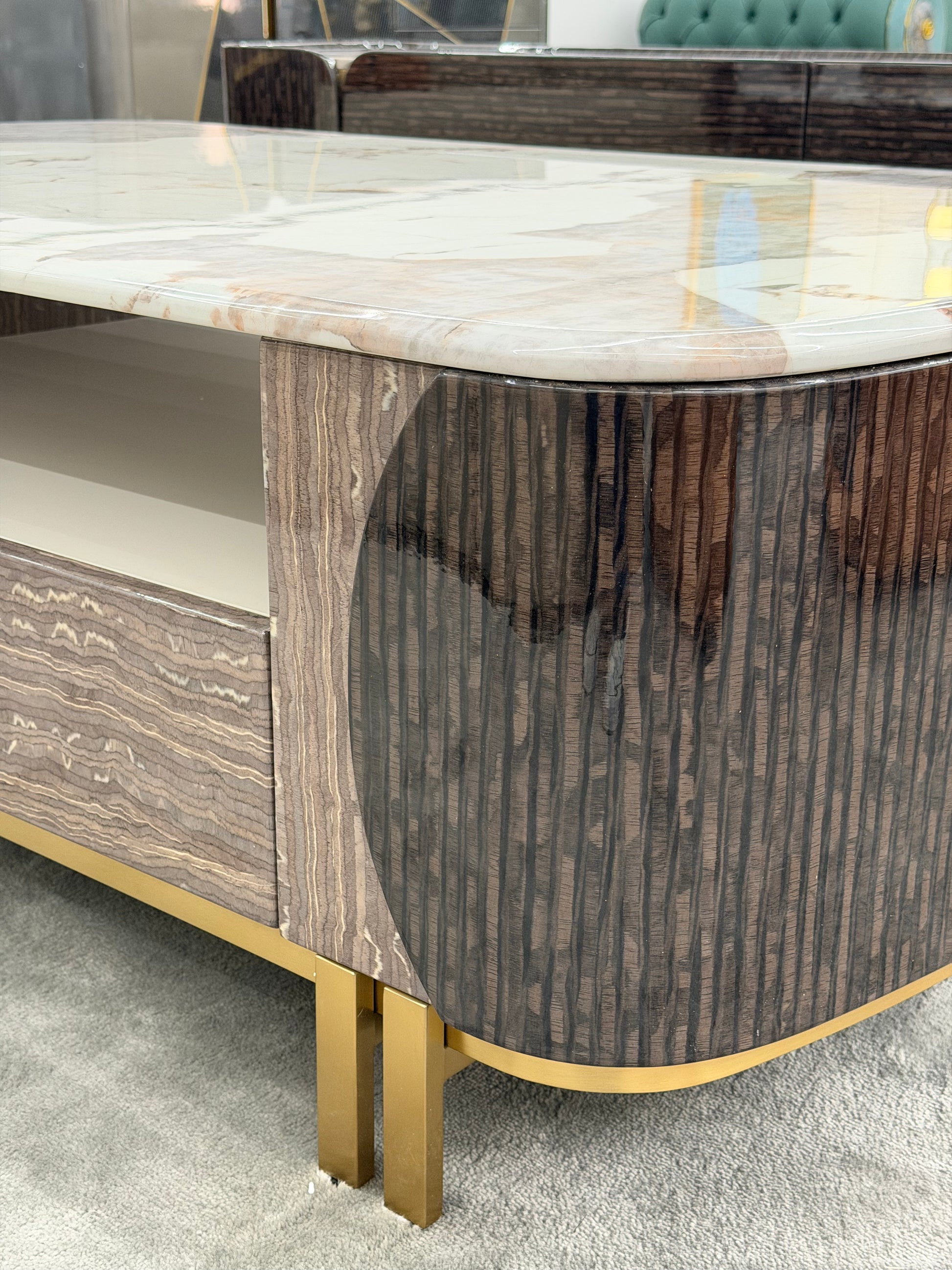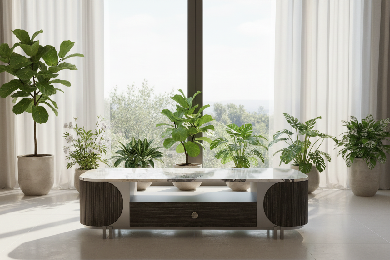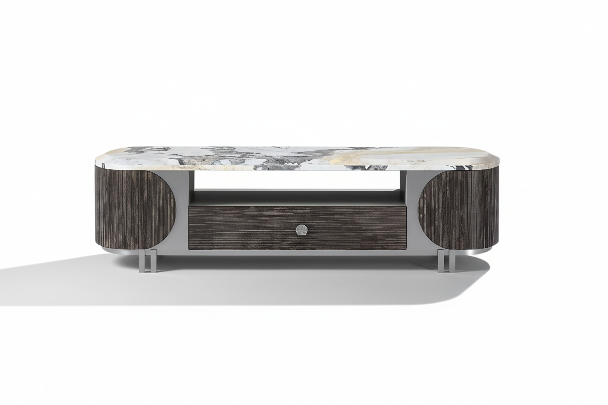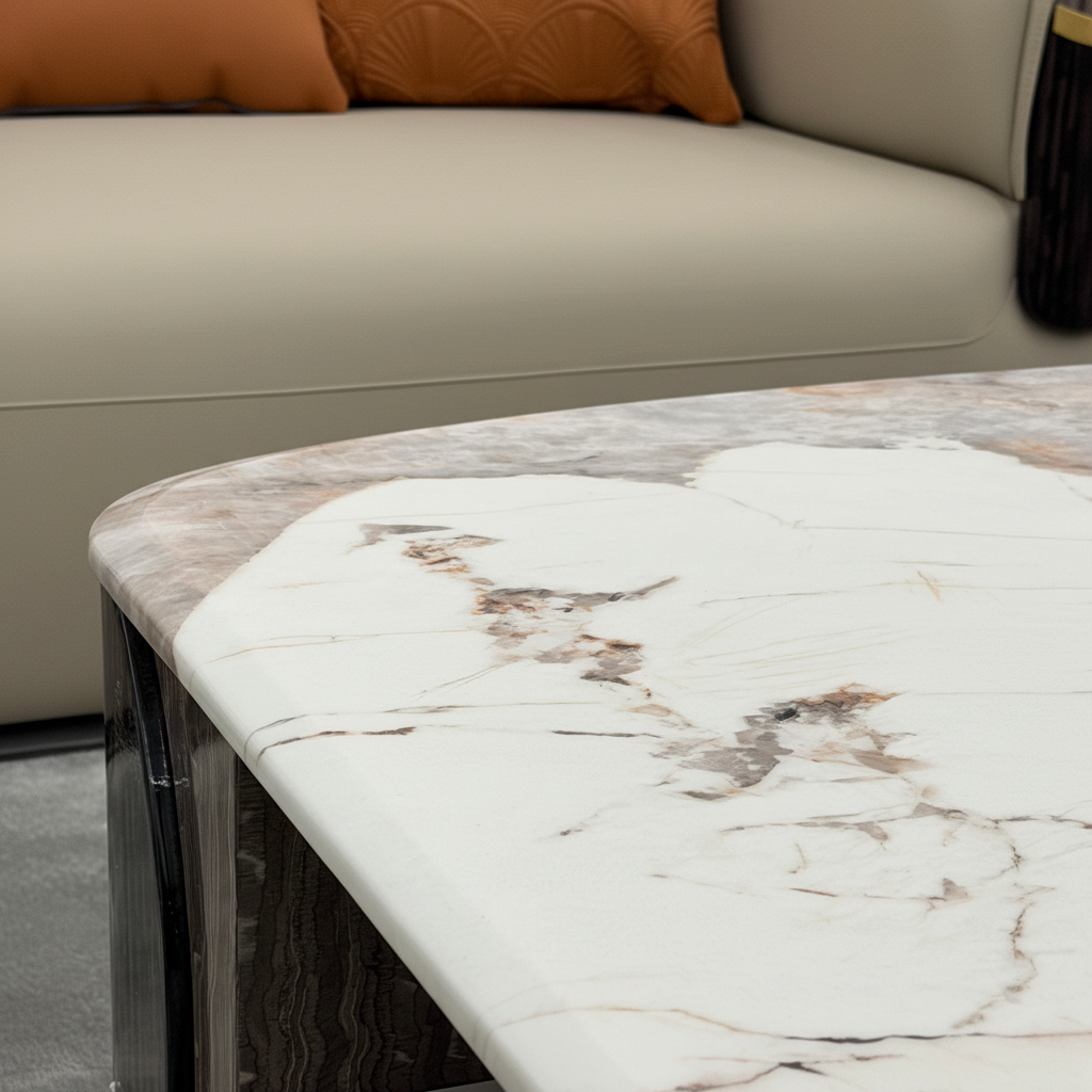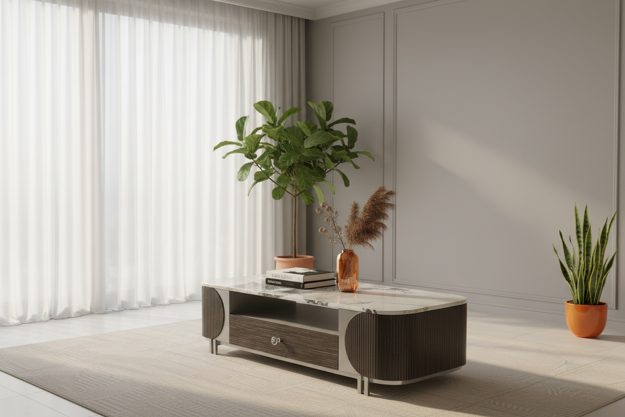 A timeless fusion of marble beauty and designer craftsmanship—made to elevate your living room with both style and function.