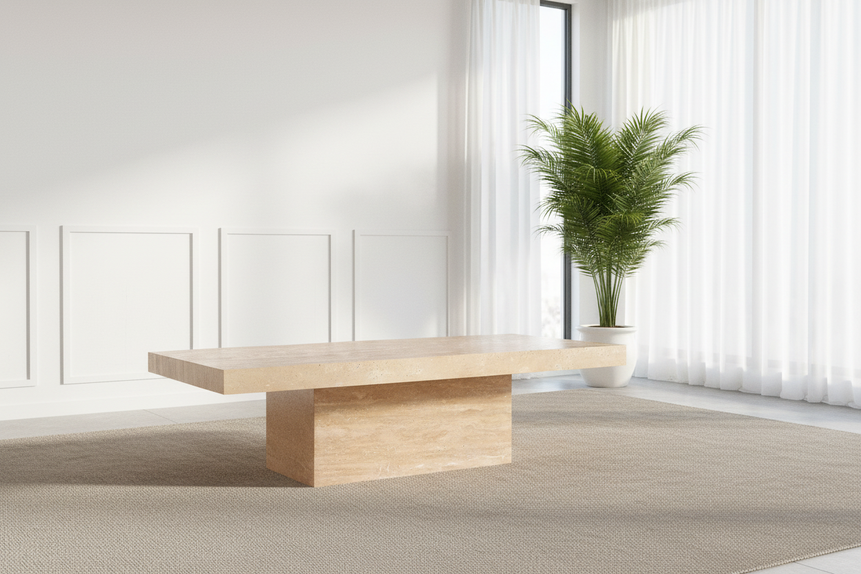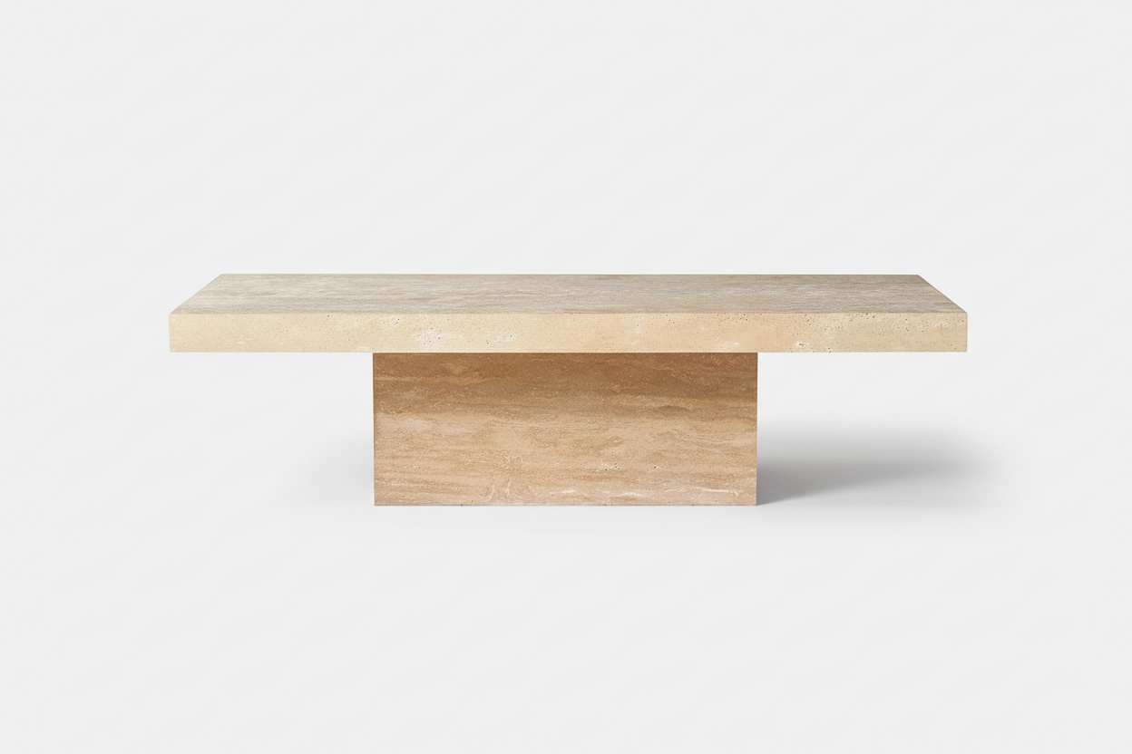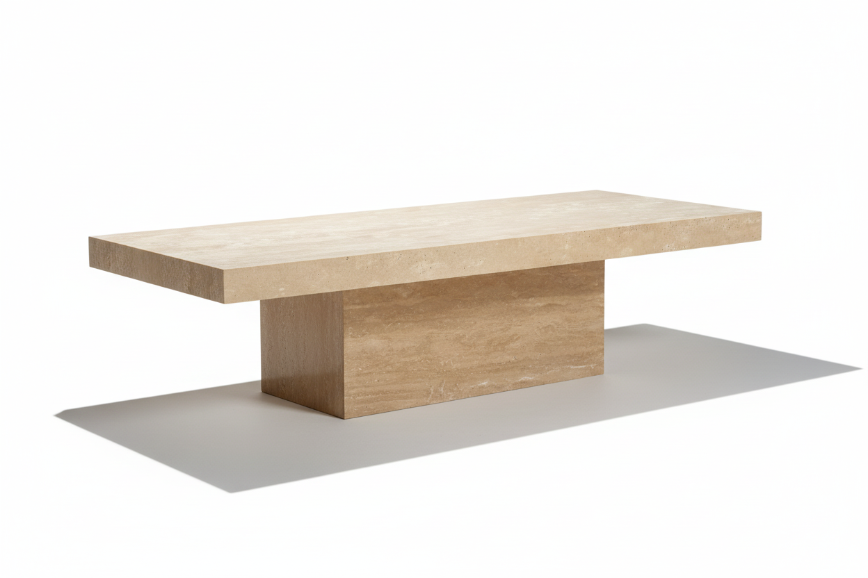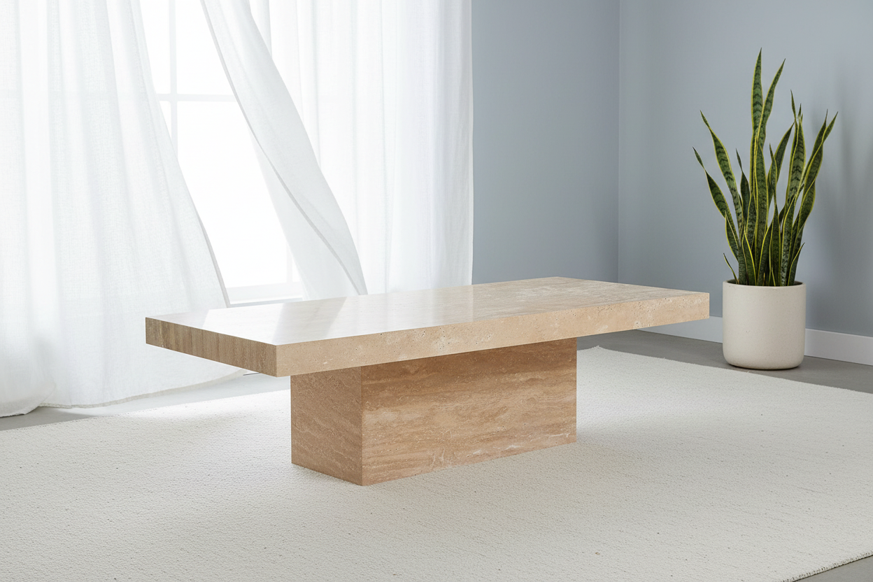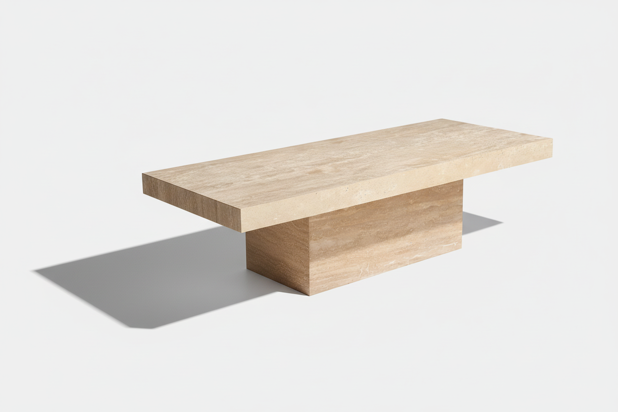 - Handcrafted from thick vein-cut natural Italian travertine with a wood core