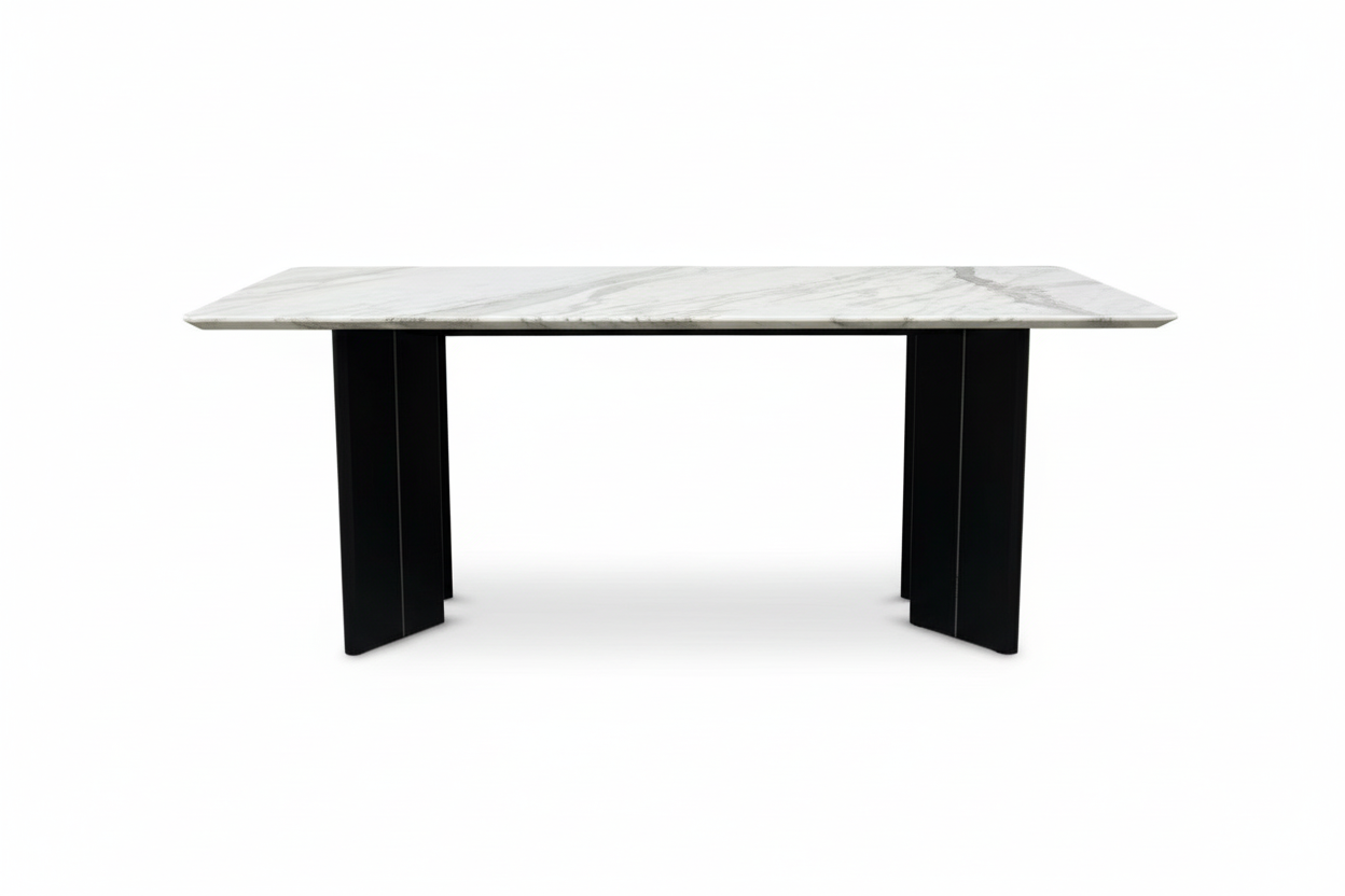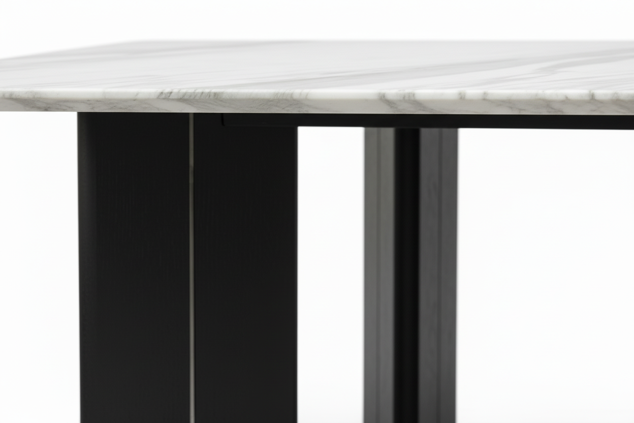 The Linea Marble Dining Table represents the pinnacle of furniture craftsmanship. Its solid wood base provides enduring strength while creating a striking visual contrast with the elegant tabletop. The sculptural form draws the eye from every angle, making it not just furniture, but a conversation piece that defines your space.