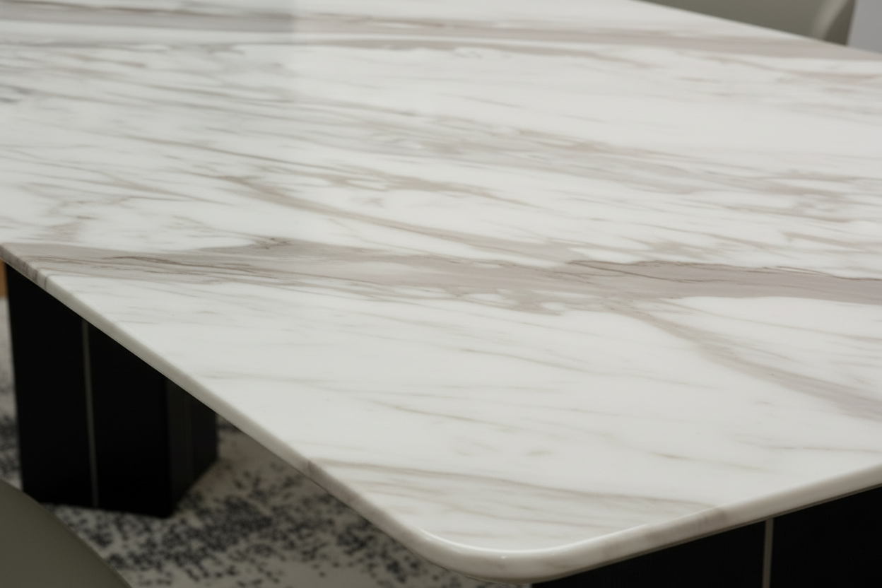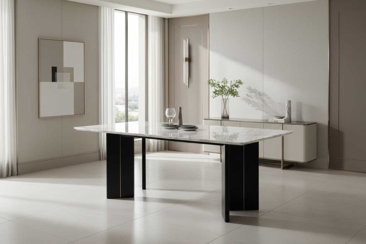 The Linea Marble Dining Table is a masterpiece of contemporary luxury, where architectural precision meets organic beauty. This stunning centerpiece transforms any dining space into a gallery of refined taste and sophisticated living.