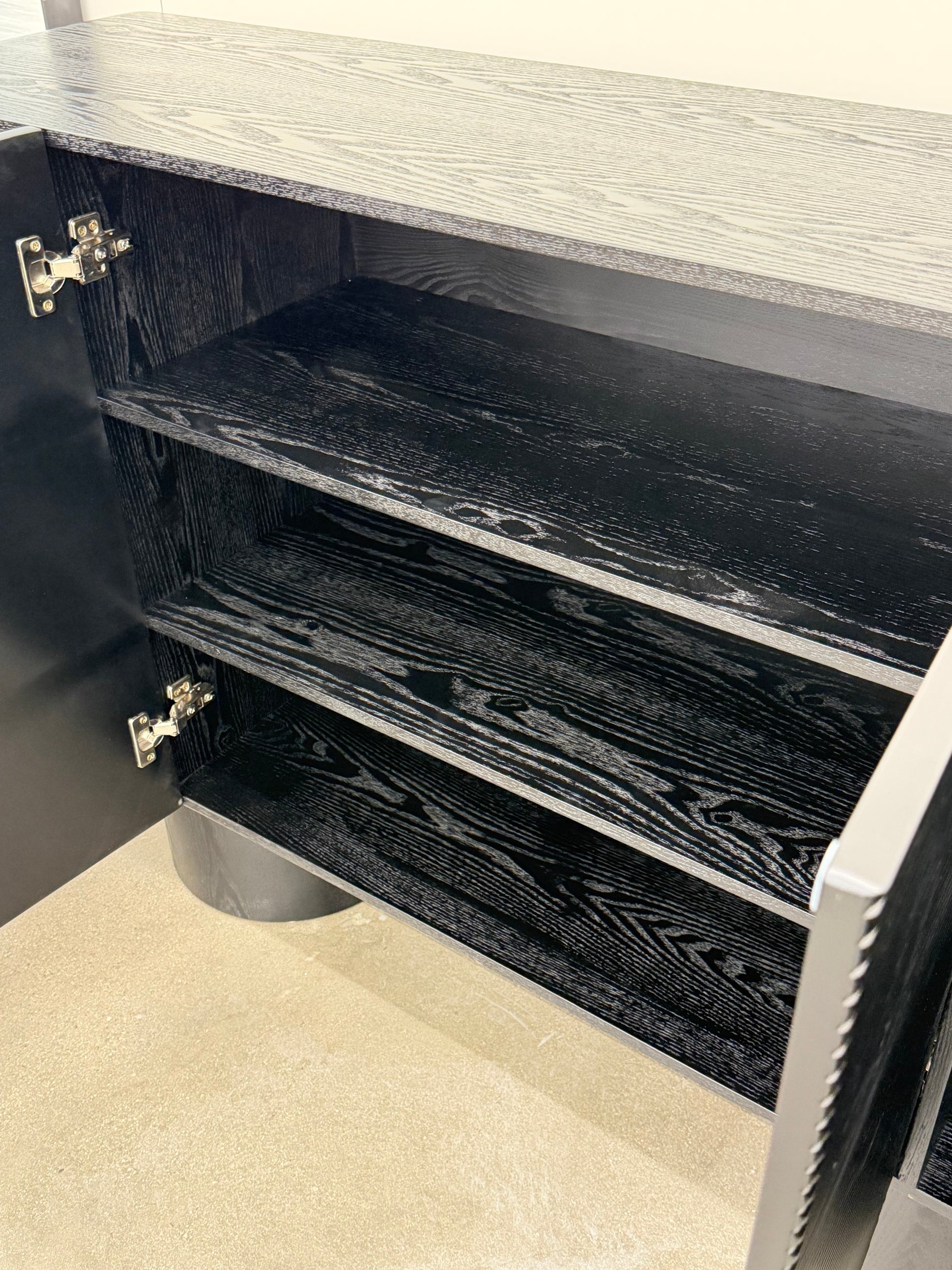 This sideboard transcends ordinary storage—it's a study in proportion and restraint. The linear pattern creates an ever-changing visual experience as natural light shifts throughout the day, while the minimalist form ensures it complements rather than competes with your curated space. Ideal for those who appreciate the intersection of Scandinavian simplicity and contemporary luxury.