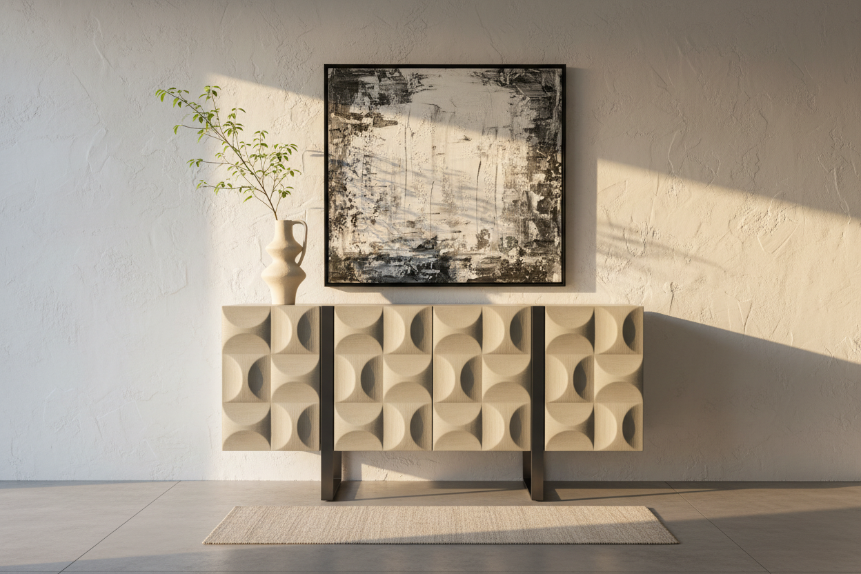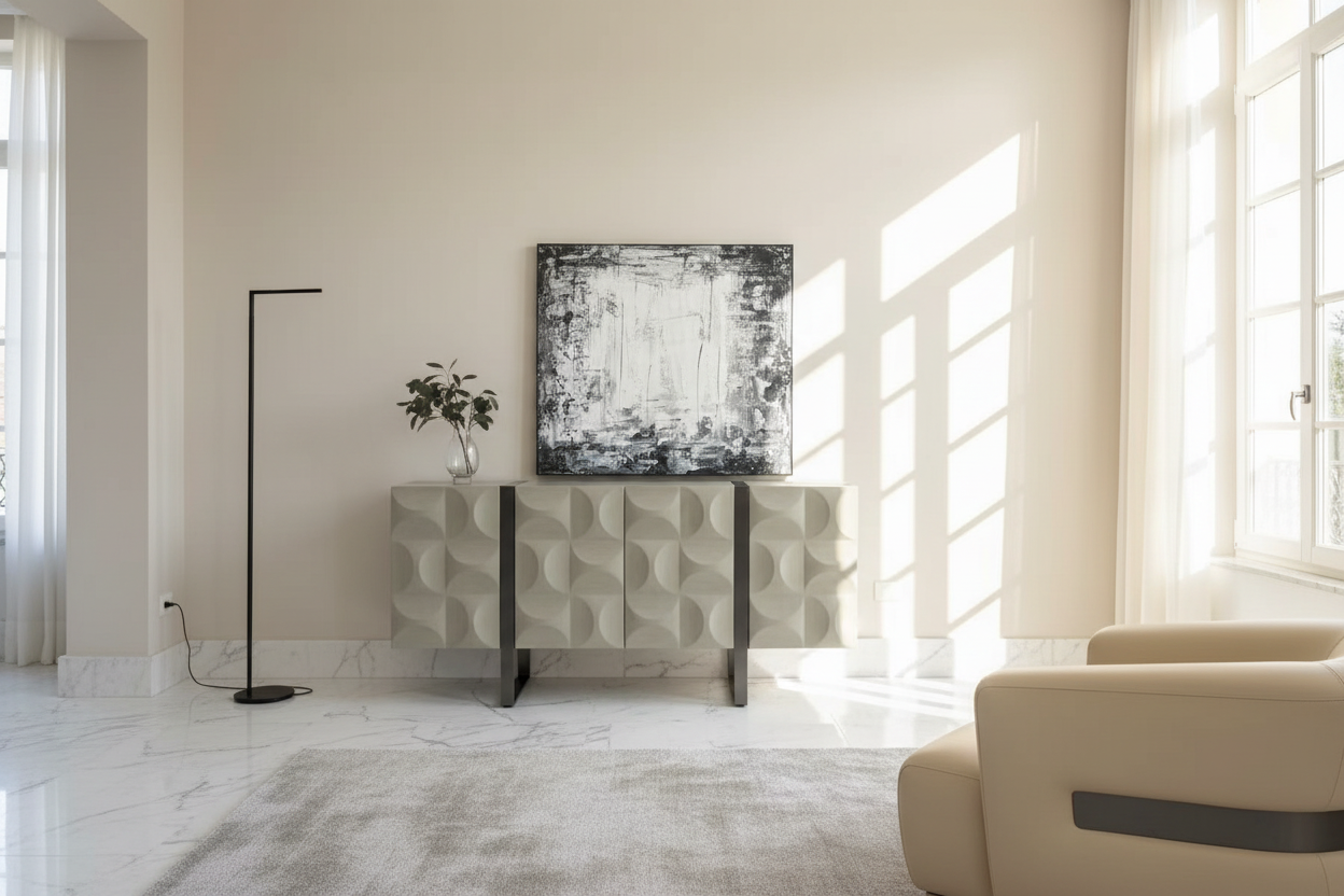 Drawing inspiration from the serene beauty of lunar landscapes and the clean lines of contemporary Italian design, the Lunar Block Sideboard features a distinctive geometric silhouette that commands attention while maintaining understated refinement. Each element is thoughtfully crafted to create visual harmony and functional excellence.