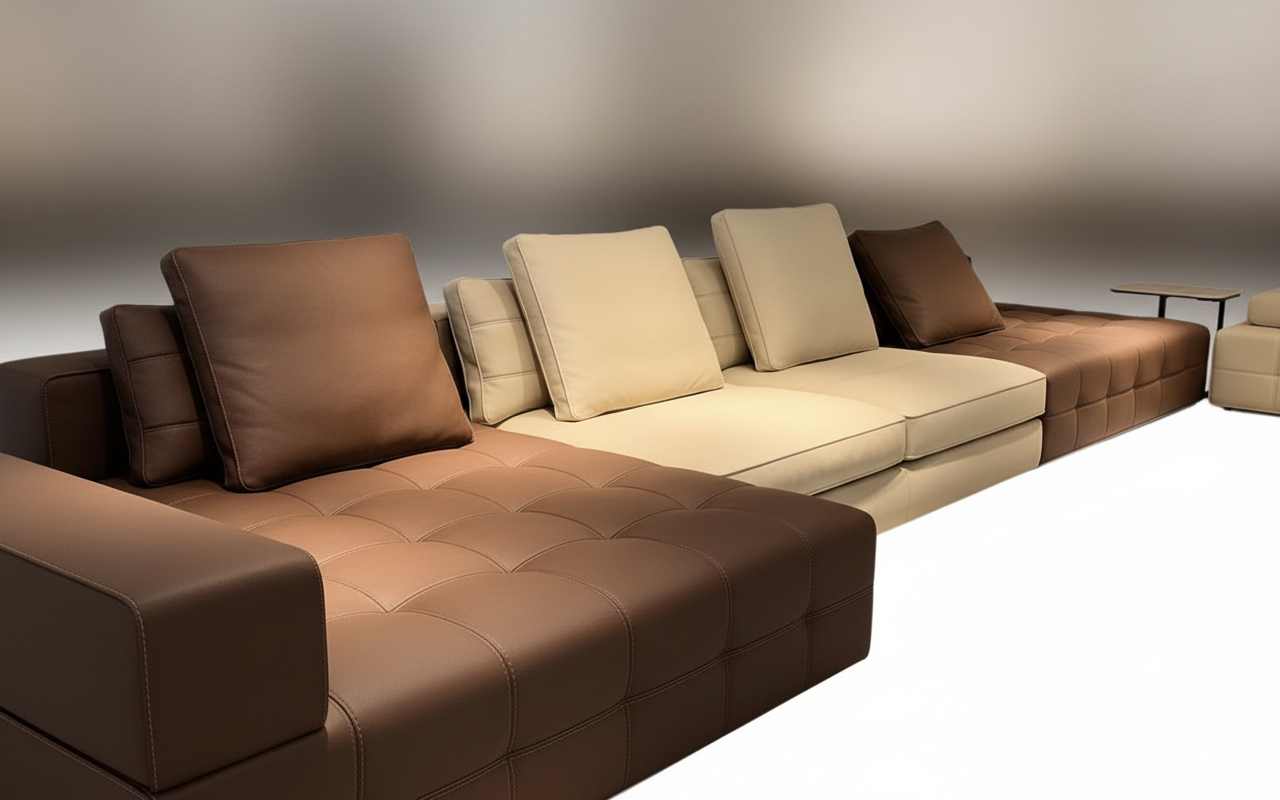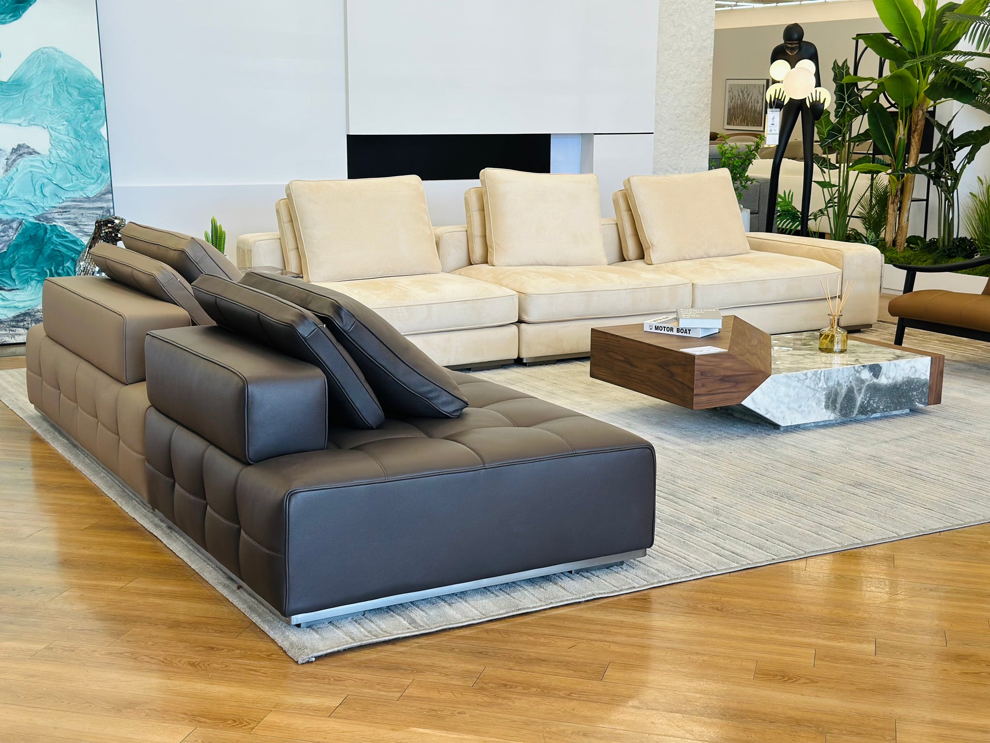 Crafted in full top-grain leather, this Italian-inspired sectional combines minimalist elegance with modern comfort, making it a focal point for any contemporary living space. Its streamlined silhouette and clean, geometric lines emphasize its sleek aesthetic, while plush, supportive cushions ensure luxurious relaxation. Perfect for sophisticated interiors, this sectional embodies timeless appeal and exceptional craftsmanship, enhancing your living space with both functionality and refined Italian aesthetics.