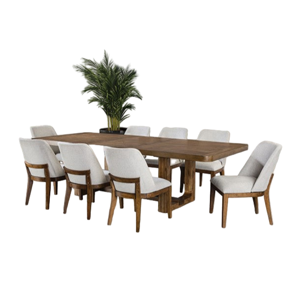 Crafted for both style and function, the Mandal Dining Table is the centerpiece your dining space deserves. Featuring a warm chestnut finish and a bold trestle base, this table blends rustic warmth with clean, modern lines to create a timeless yet contemporary look.