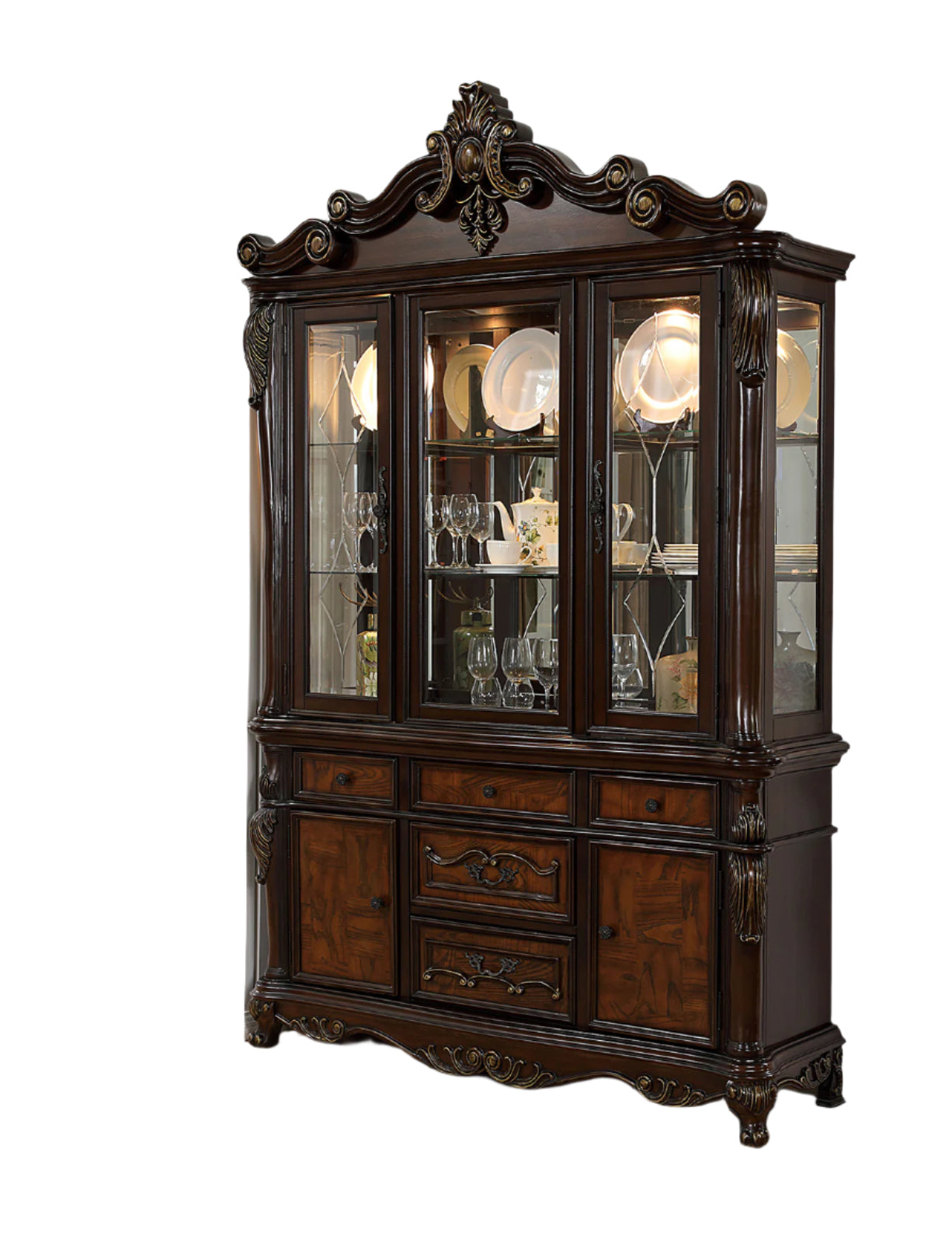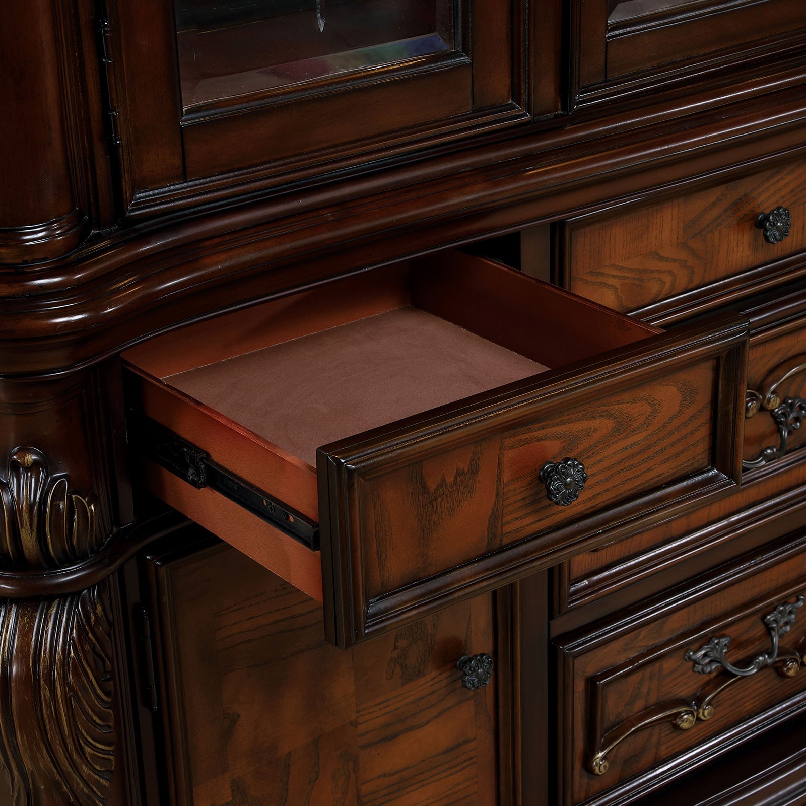 🪟 Glass Display Hutch – Perfect for showcasing china, crystal, or décor, with built-in lighting to enhance visibility.