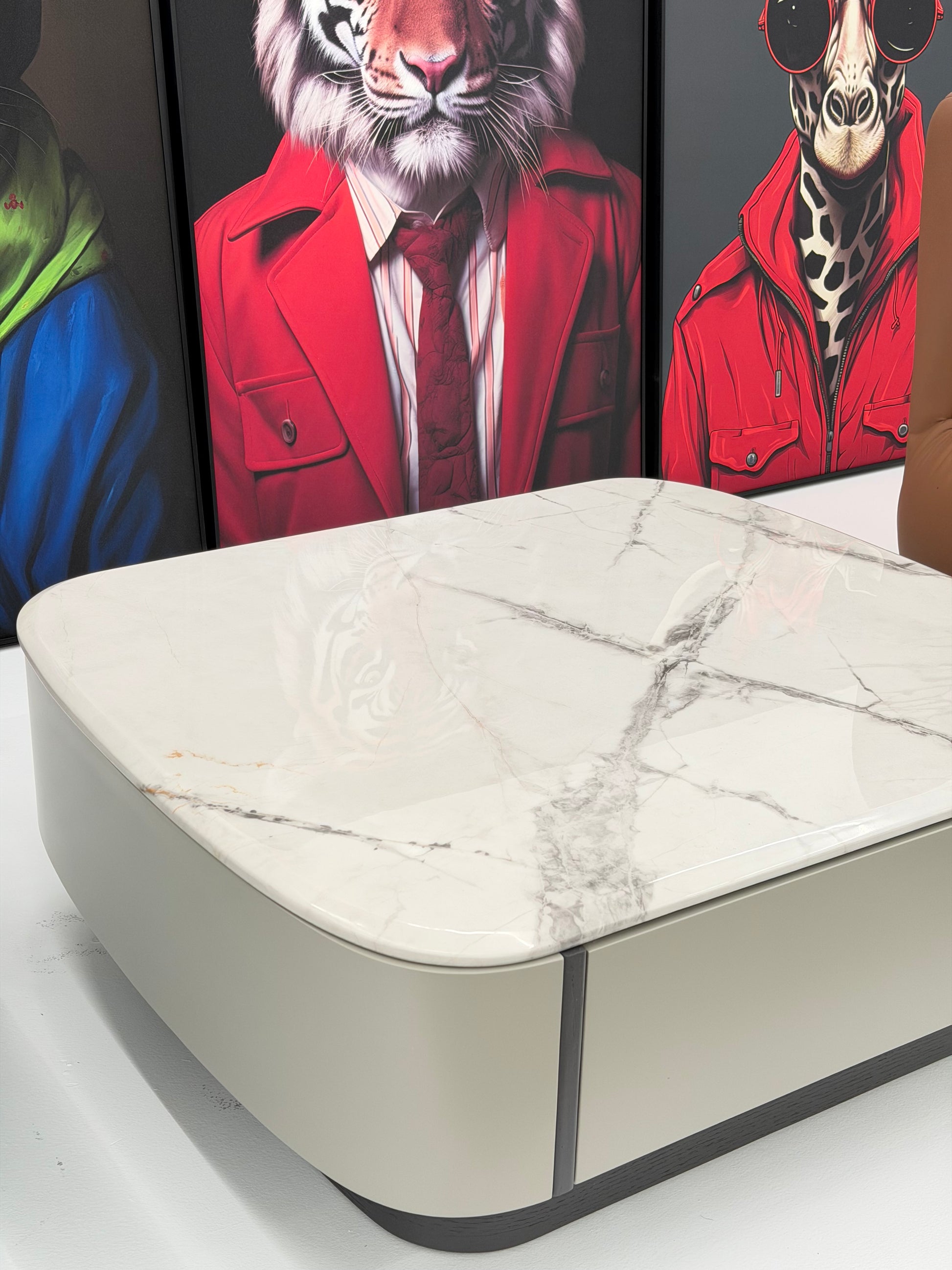 The Marble Aura Coffee Table brings together elegance and modern artistry in a functional centerpiece. Its sleek design, premium materials, and soft geometric form make it an ideal addition to curated living rooms seeking both beauty and practicality. Whether styled with décor or left minimal, this table radiates quiet luxury and timeless appeal.