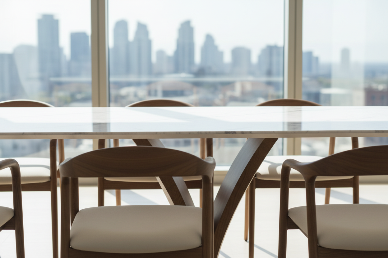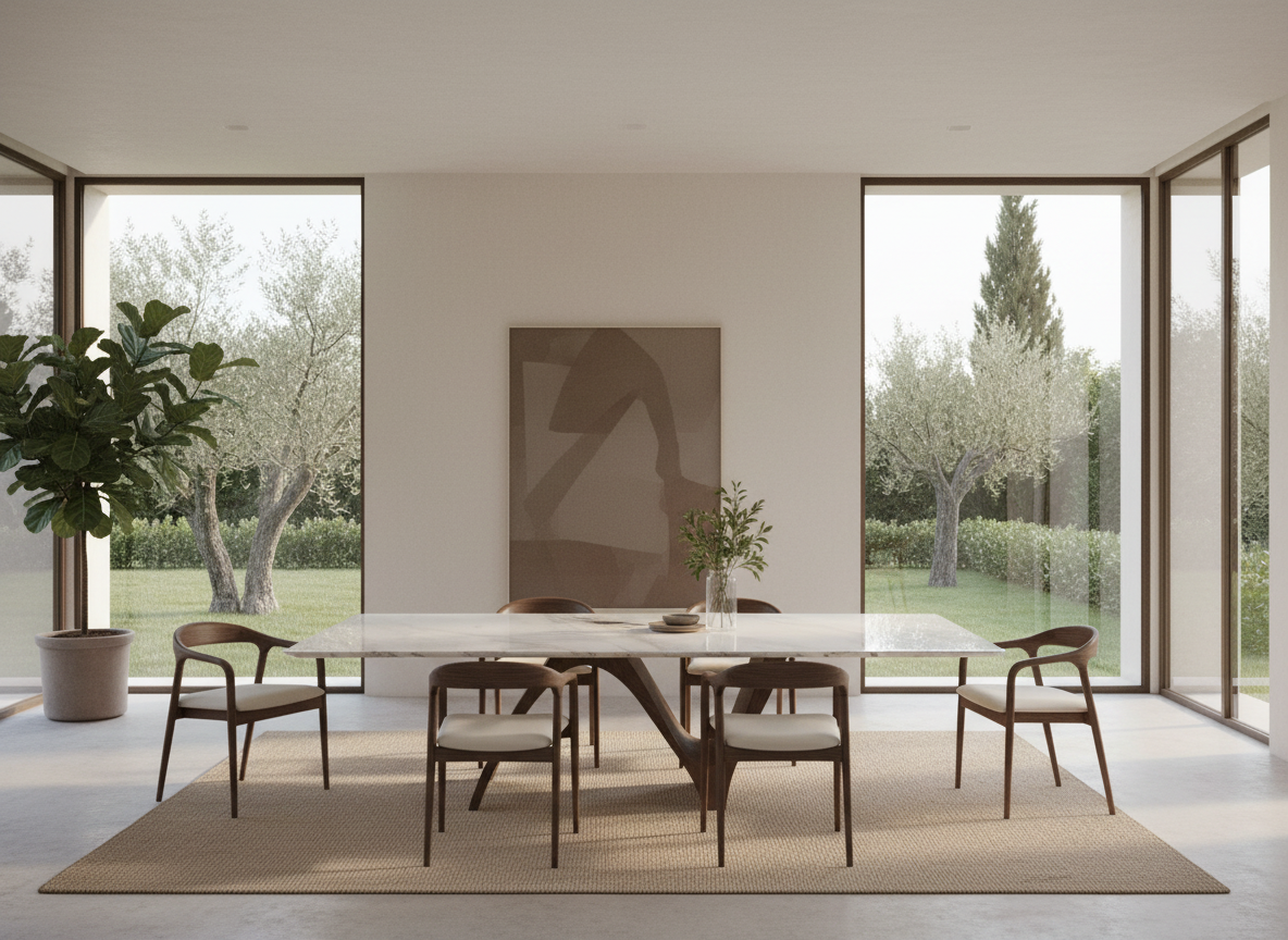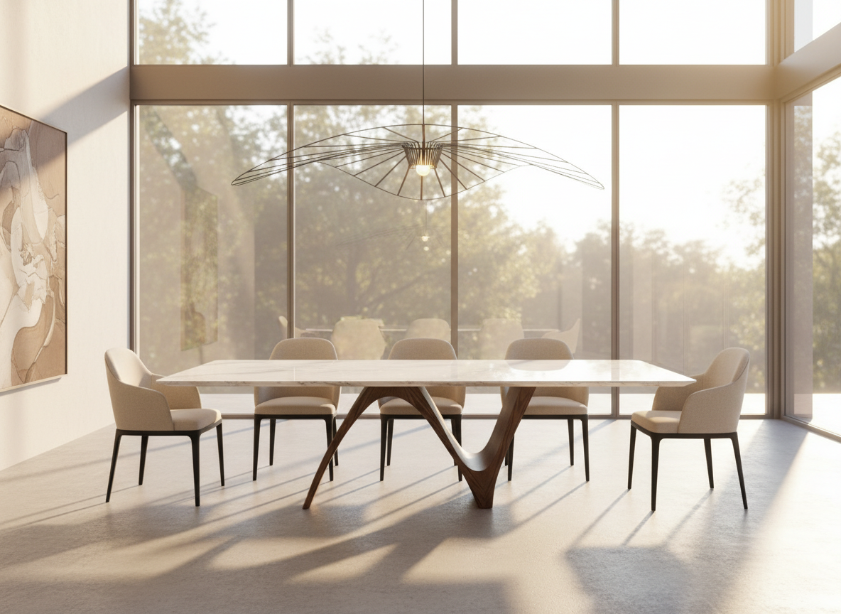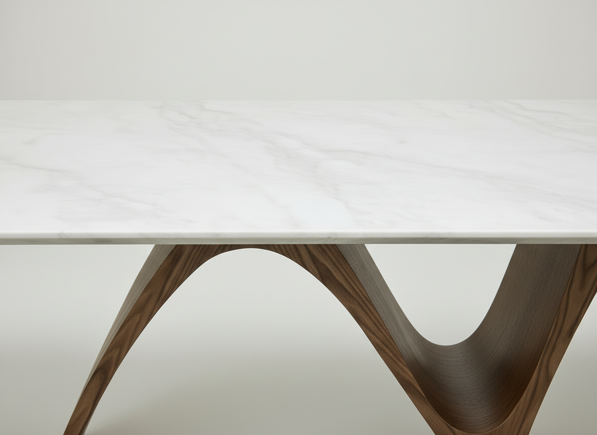 Maxridge Marble Dining Table – 8-Seater Rectangular Table with Sculptural Walnut Wood Base