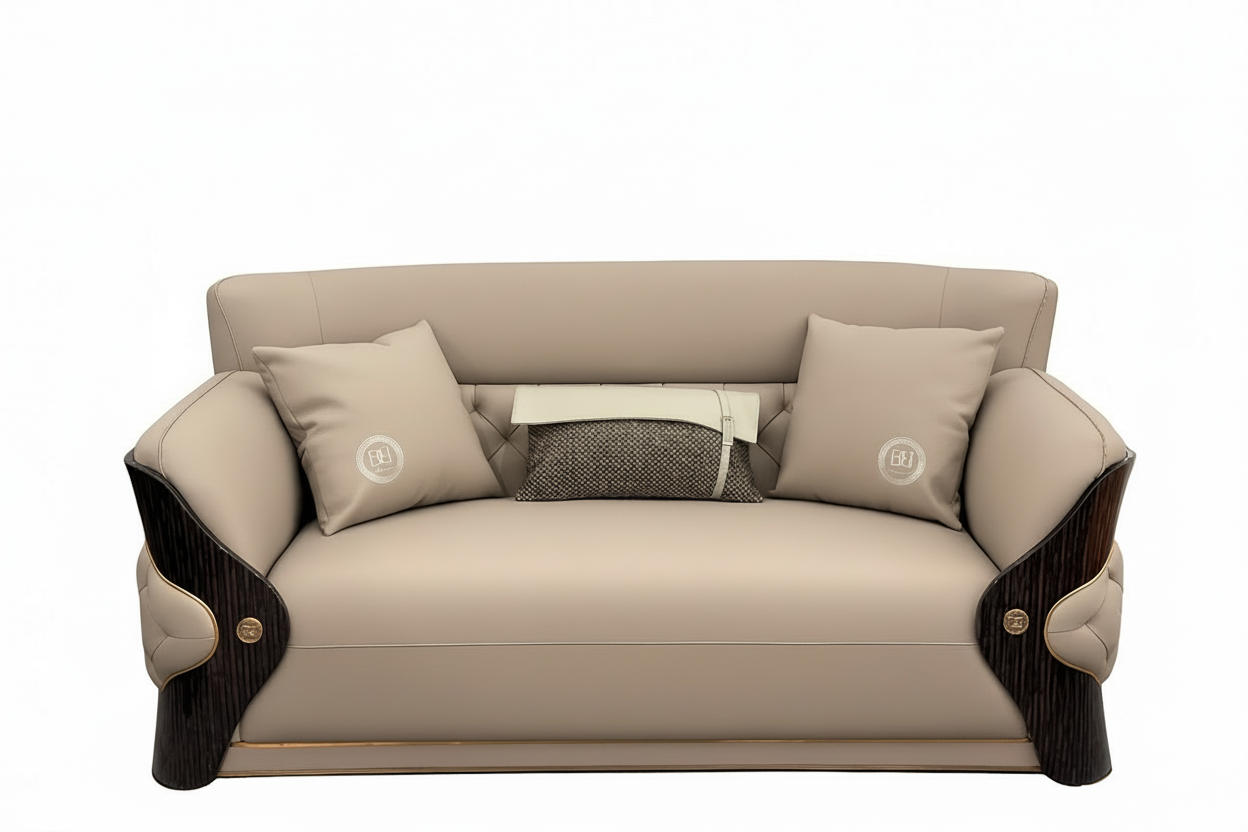 - Premium beige-taupe upholstery with subtle texture and depth