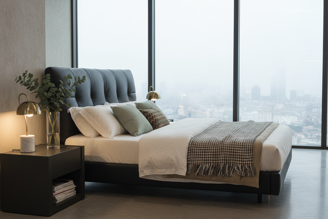 Introduce modern elegance to your bedroom with the Metro Luxe Upholstered Bed, combining minimalist aesthetics with plush comfort.