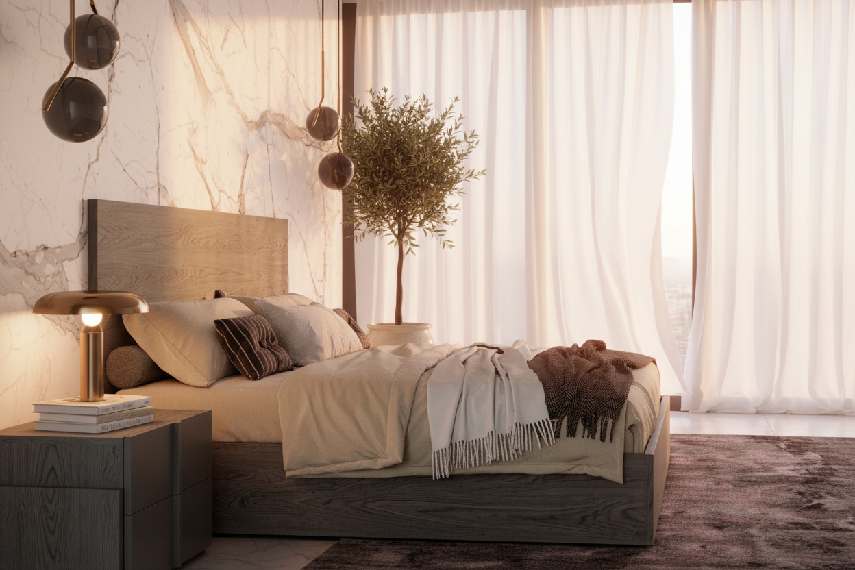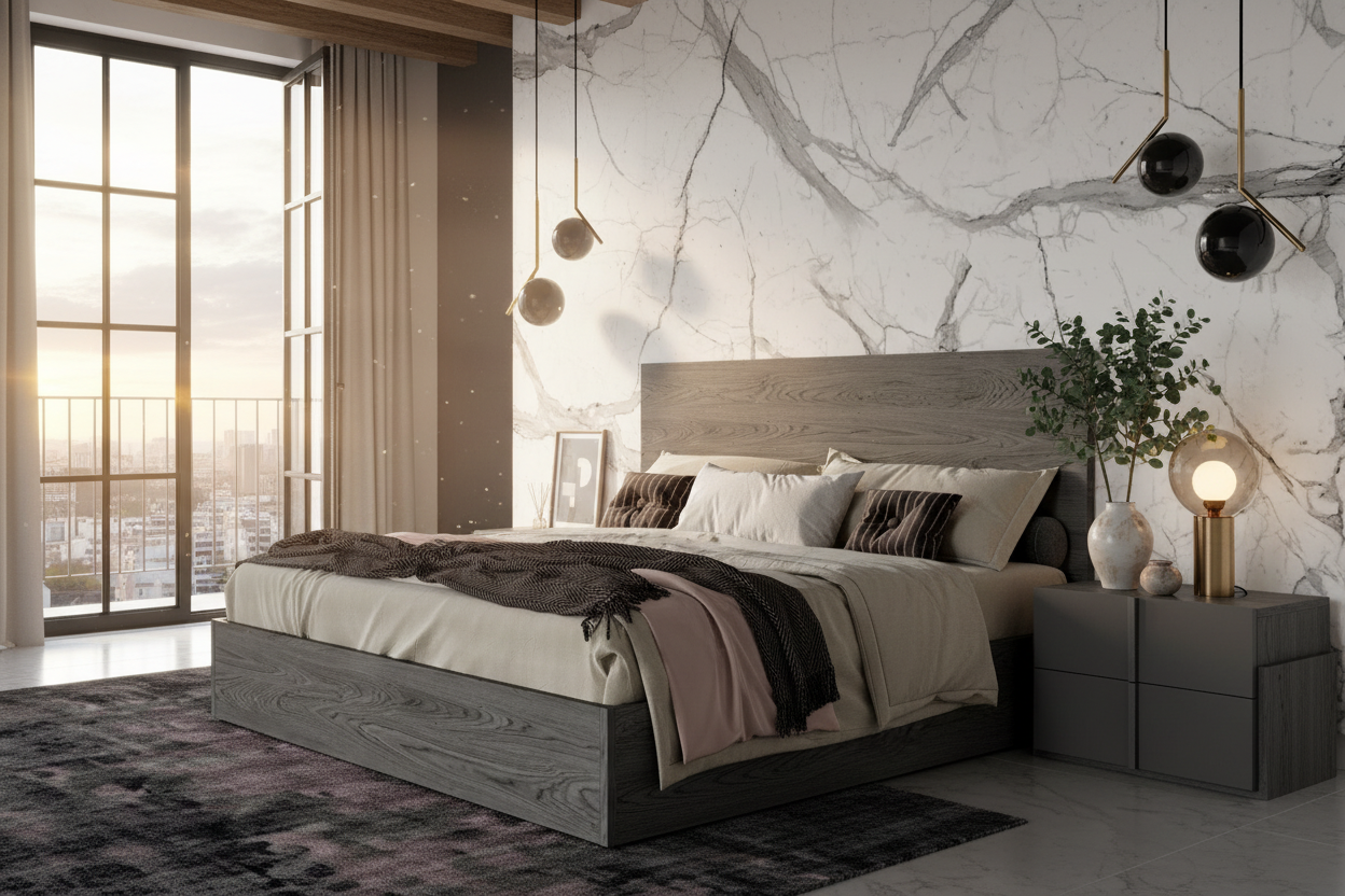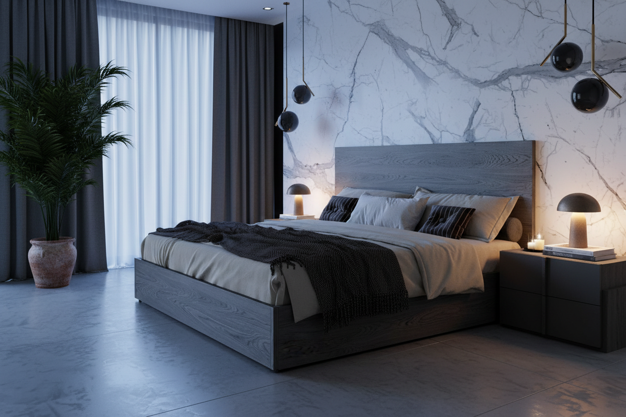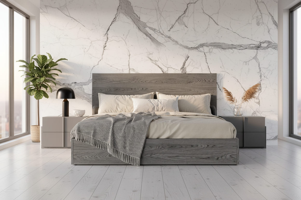 Space-Saving Frame: The bed’s streamlined design with clean lines keeps the space visually light and uncluttered.