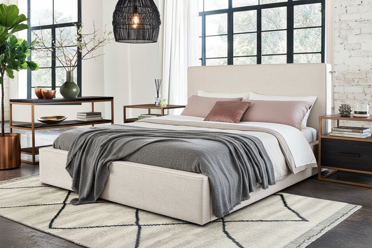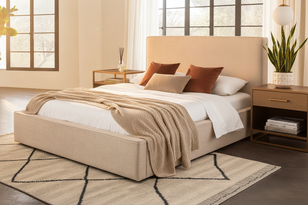 - Streamlined Headboard: Features a low, padded headboard with soft upholstery for a minimalist aesthetic.