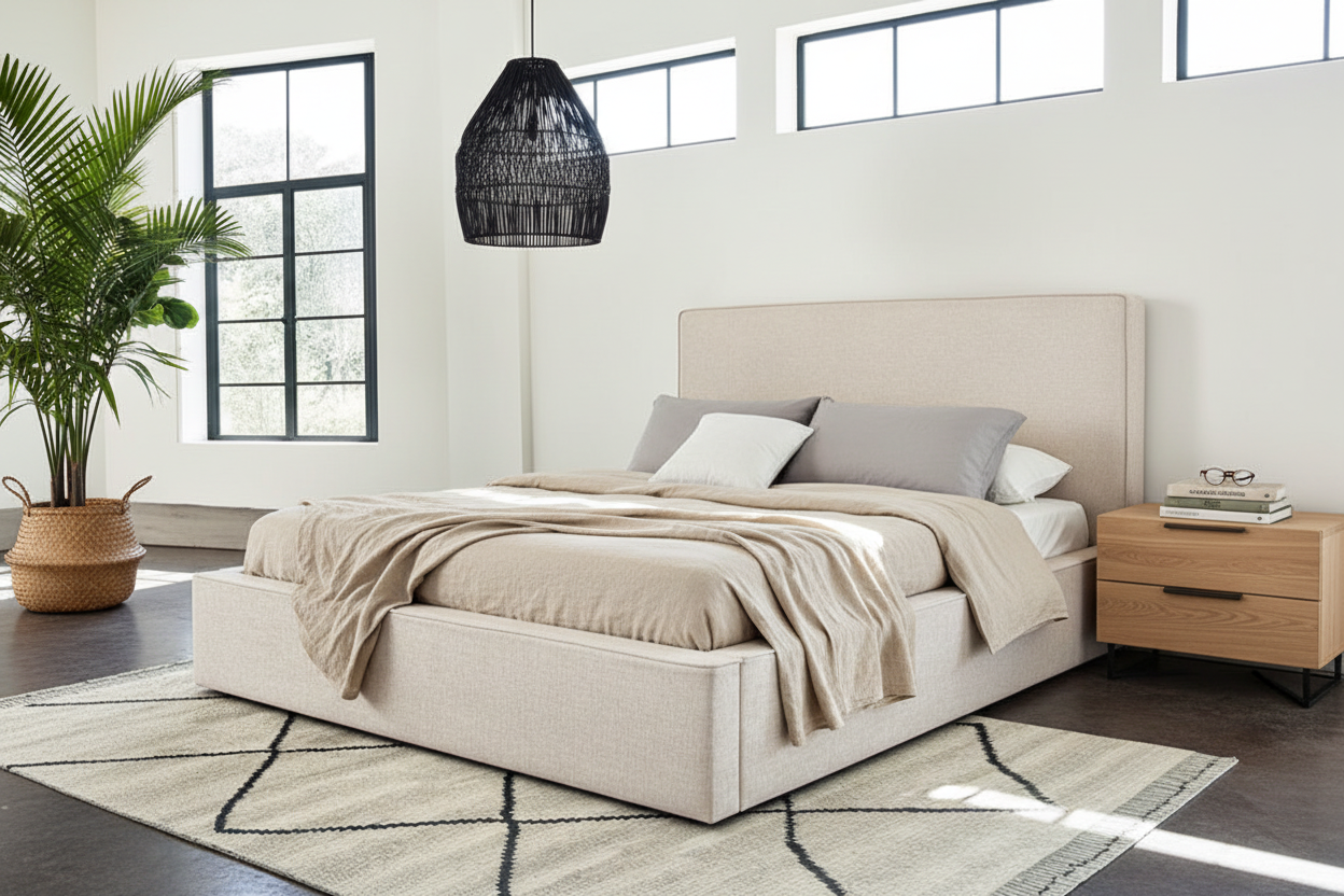 Sleek and understated, this modern low-profile platform bed is designed for minimalistic elegance and functional comfort. Its clean lines and versatile design make it an essential addition to contemporary bedrooms.