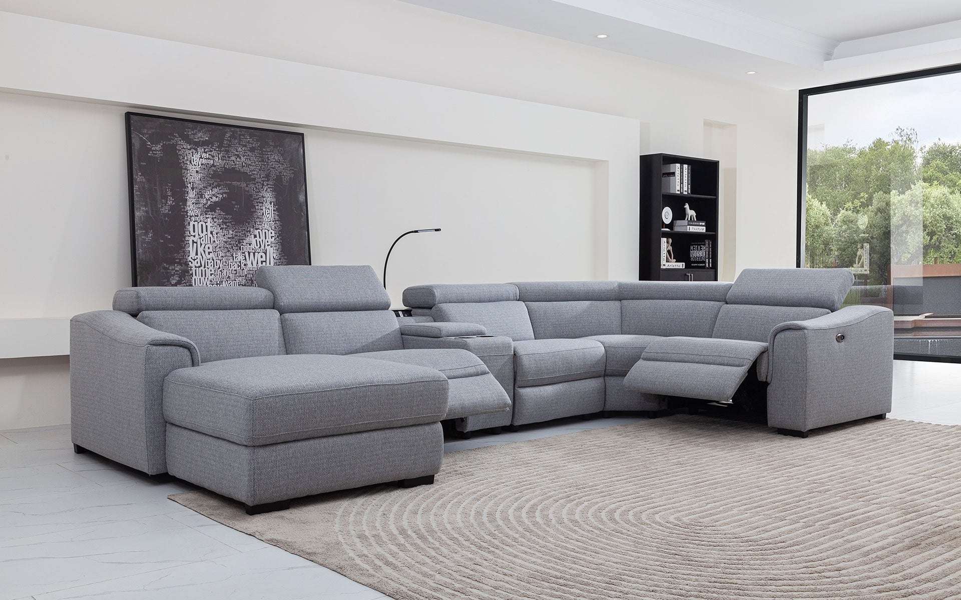 Upgrade your relaxation experience with the Vittoria Modern Motion Reclining Sectional. This sleek and stylish sectional offers manual reclining seats, making it perfect for unwinding after a long day. Upholstered in soft fabric with a durable frame, this recliner combines comfort with contemporary style.