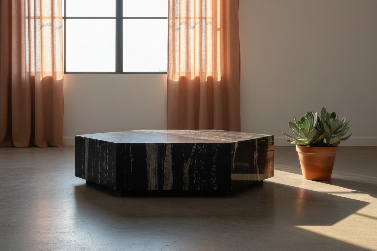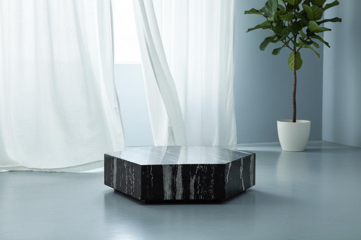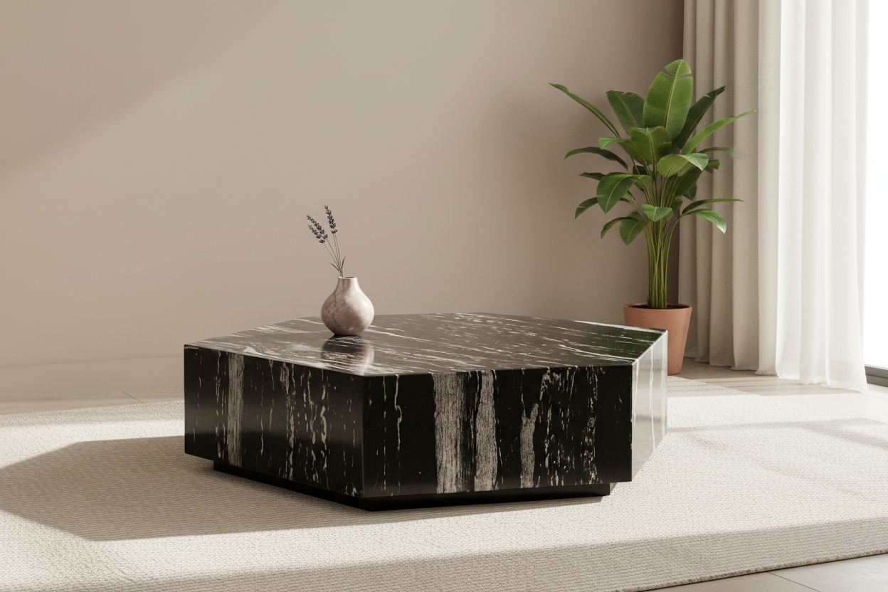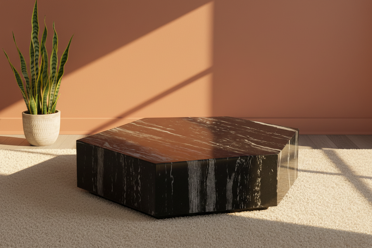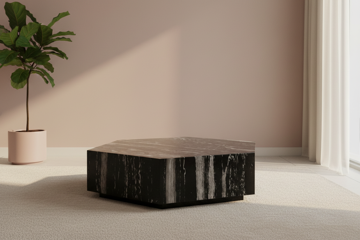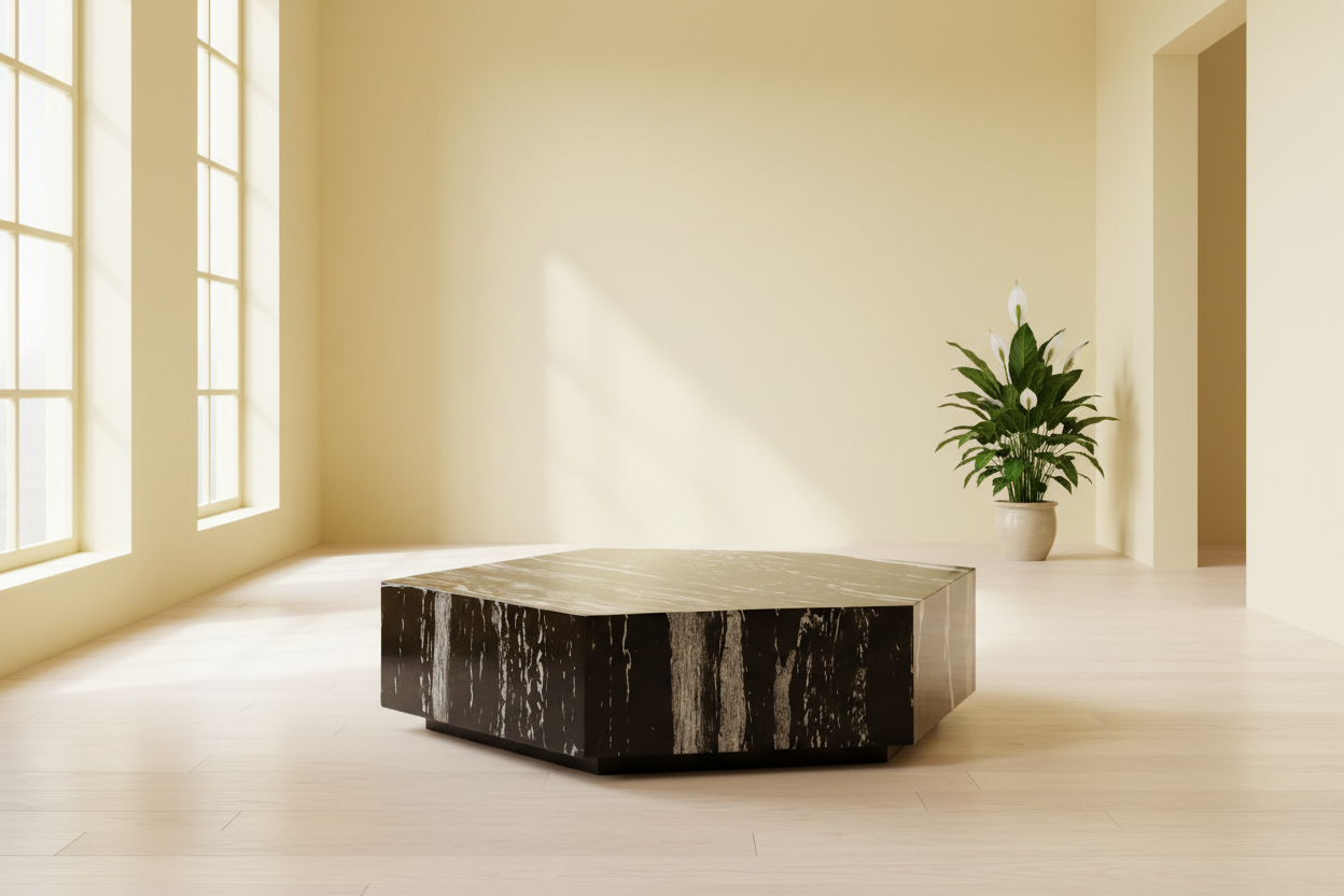 The Monique Modern Coffee Table is designed to stand out as a bold statement piece in any living room. Crafted from premium marble with striking natural veining, its geometric silhouette adds both sophistication and contemporary flair. The sharp lines and refined finish give it the appeal of a sculptural artwork, while still providing the practicality of a spacious tabletop.