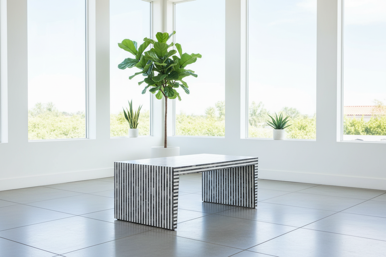 The Monochrome Mosaic Coffee Table is the epitome of modern luxury, perfect for elevating your living room décor.